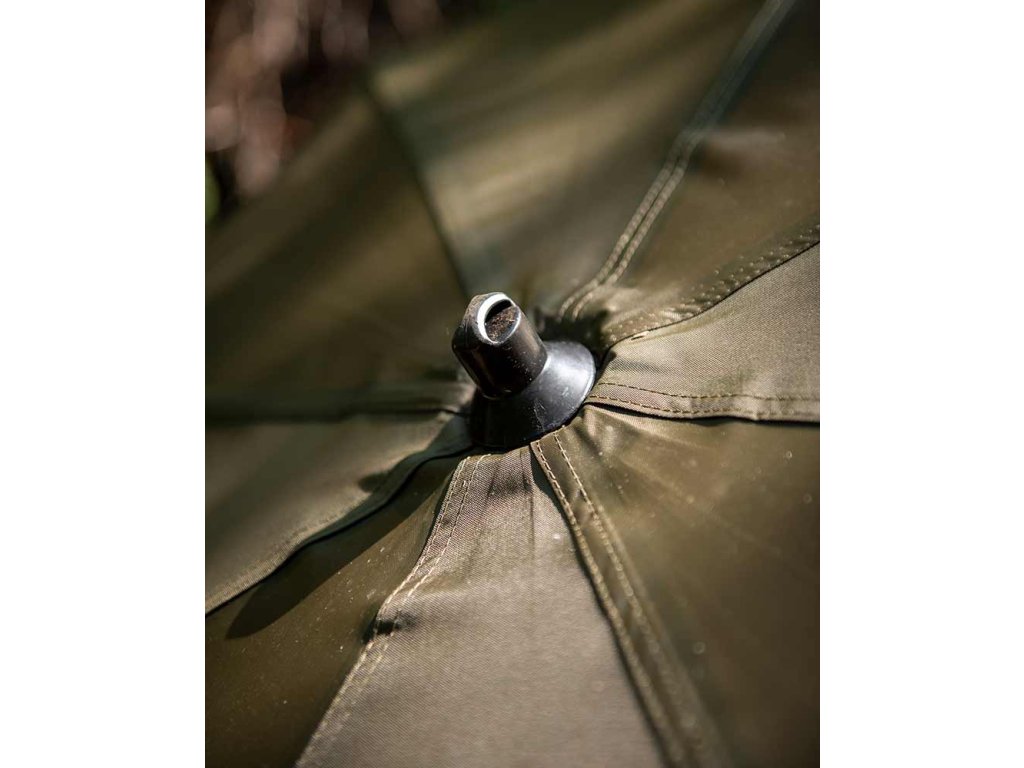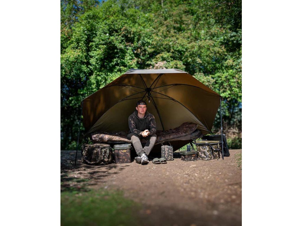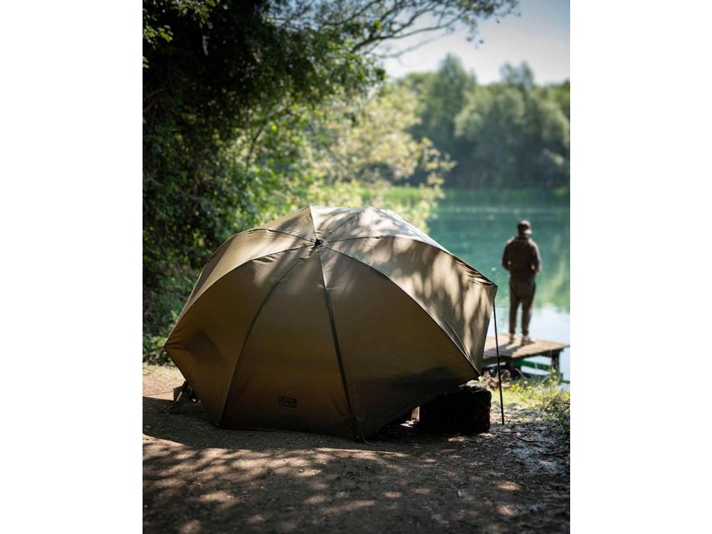 Ideální pro krátké jednodenní vycházky nebo jako dodatečný úkryt pro návštěvy při delších výpravách. Středová tyč je odnímatelná a nastavitelná do stylu Nu-brolly, což umožňuje použití s podpěrnými tyčemi nebo i bez nich. Středovou tyč lze také odšroubovat, připevnit rovnoběžně se zadní částí deštníku a zapíchnout do země, čímž zajistí stabilitu bez toho, aby překážela v prostoru. Dva závity pro podpěrné tyče (nejsou součástí balení) a zadní upínací očka poskytují další možnosti fixace. Konstrukce je z polyesterové tkaniny s vodním sloupcem 2000 mm ve vzoru Fox camo.