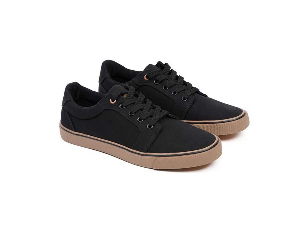- Pohodlné plátěné boty kombinaci černé a tříslové barvy