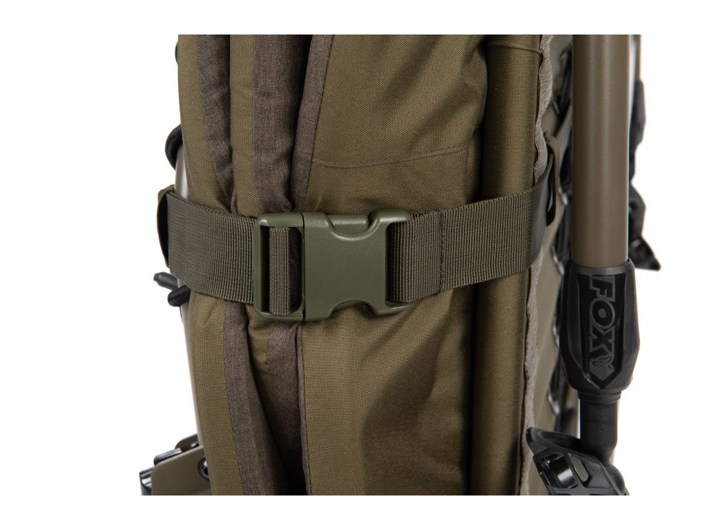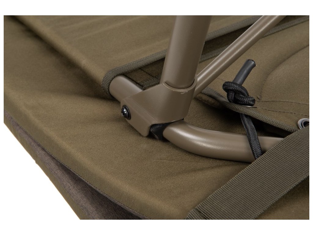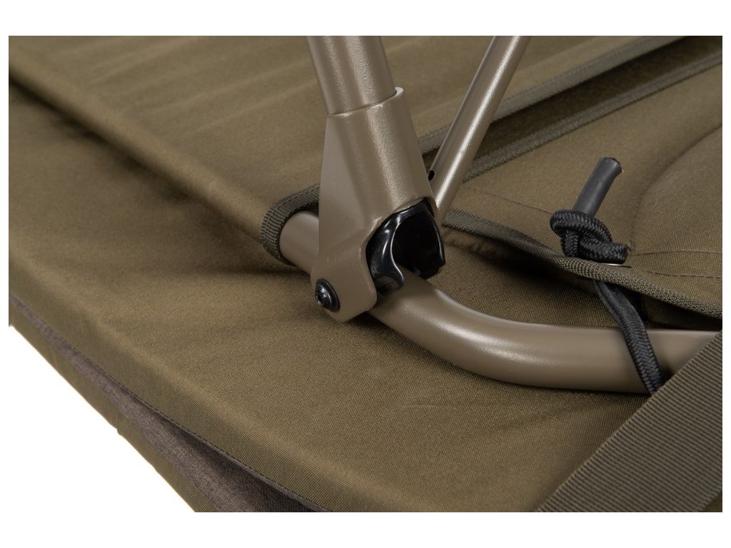 - Pár dvojitých pantů umožňuje uložení spacího pytle uvnitř složeného lehátka