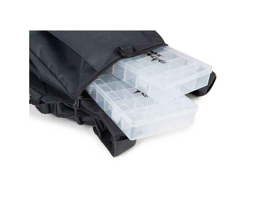 Vysoce funkční batoh s předním i zadním úložným prostorem a úložnými krabičkami.
