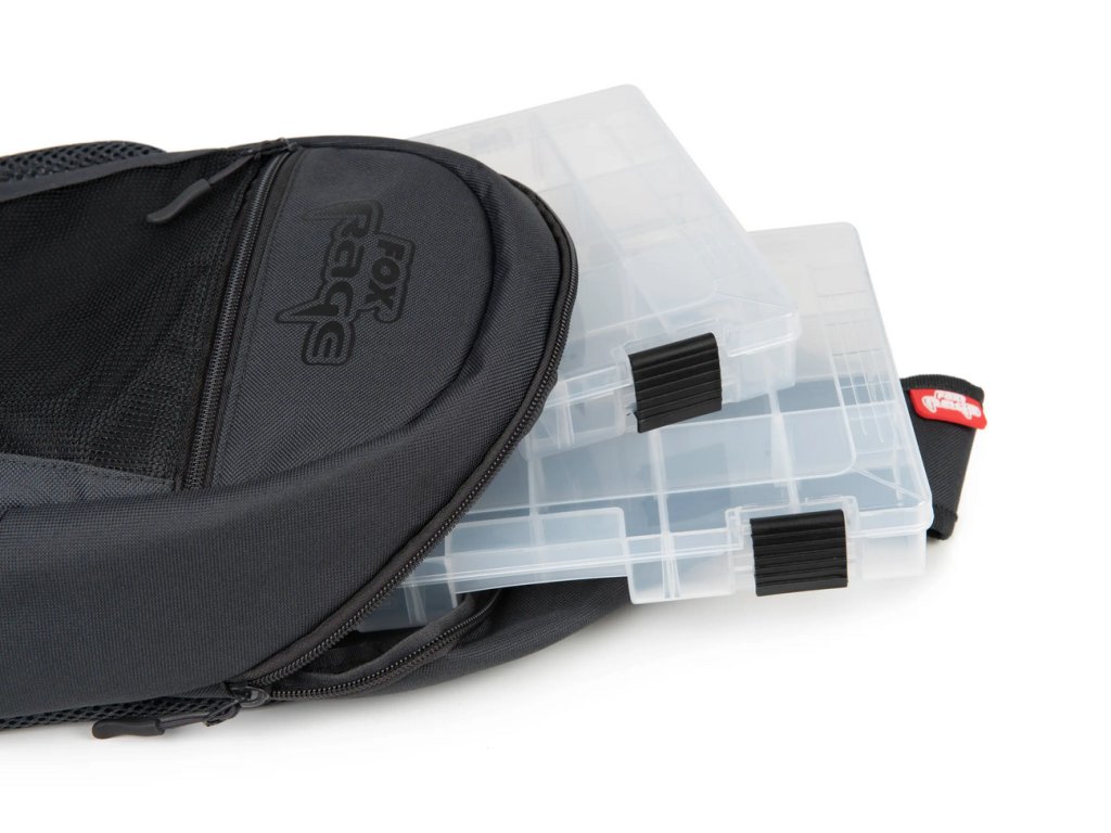 Lehký batoh určený pro mobilní rybáře. Jeden popruh poskytuje rychlý přístup k uloženému obsahu