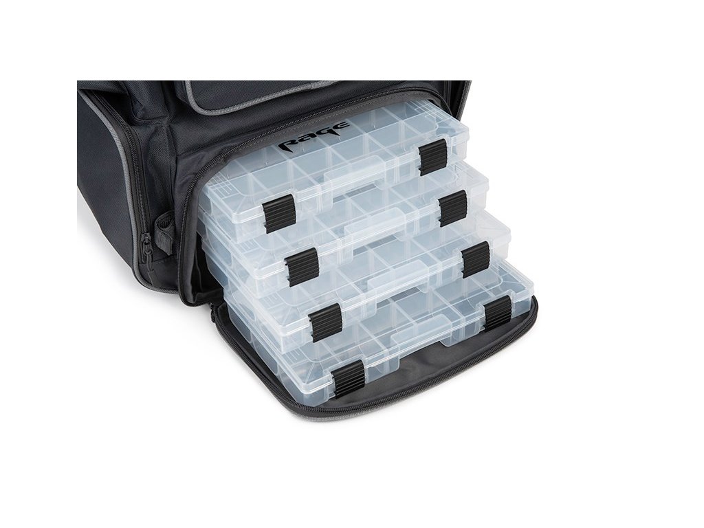 Super funkční batoh s velkou kapacitou má hlavní oddíl včetně 4 mělkých krabiček a další úložné oddíly na víku a bocích batohu