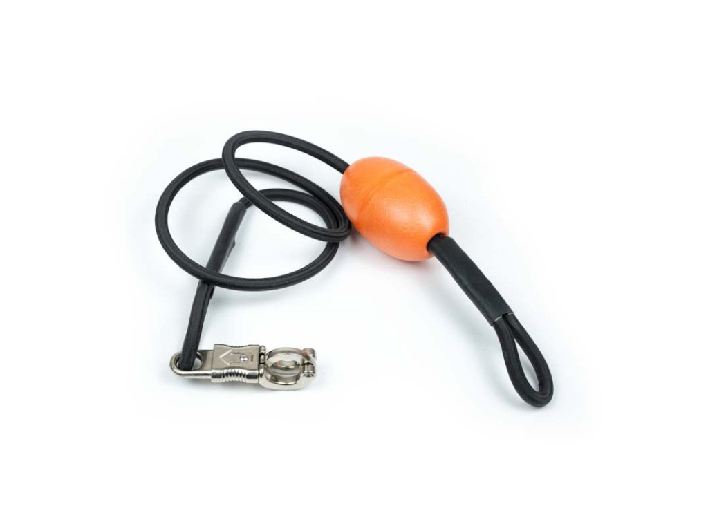 Kvalitně zpracovaný, vysoce pevný 150 cm dlouhý elastický fendr s dobře viditelným oranžovým plovákem a pružinovou uzamykací sponou pro bezpečné uvázání člunu za všech podmínek. Rychloupínací spona (karabina) umožňuje její uvolnění jednou rukou. Spodní prázdnou smyčku je potřeba upevnit k nějaké stabilní konstrukci, nebo na ní připevnit závaží. V tom případě doporučujeme minimálně 10 kg, v obtížných podmínkách i výrazně víc. Závisí přitom i na tvaru zátěže případně její schopnosti držet na dně.