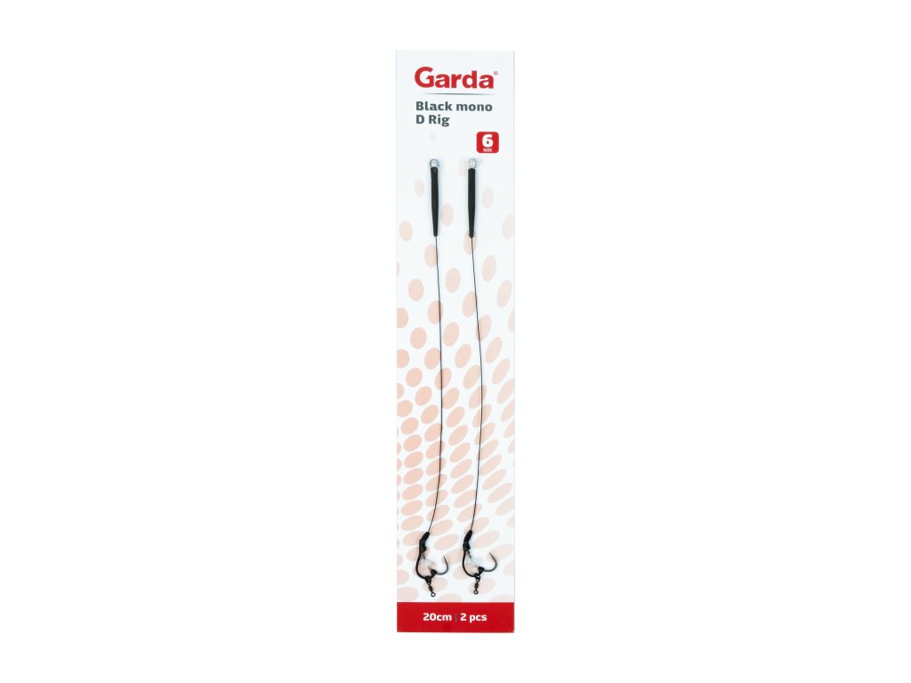 Garda Black Mono D rig je velmi účinný a univerzální návazec na montáž s plovoucím boilie, vyváženým boilie i boilie na dno. Nástrahu připevněte pomocí Garda Bait Flos. Při použití plovoucího boilie je nutné přidat na návazec Garda Carp Shot 0,9g nebo jiné protizávaží. Vyrábí se ve variantě s protihrotem i bez protihrotu.