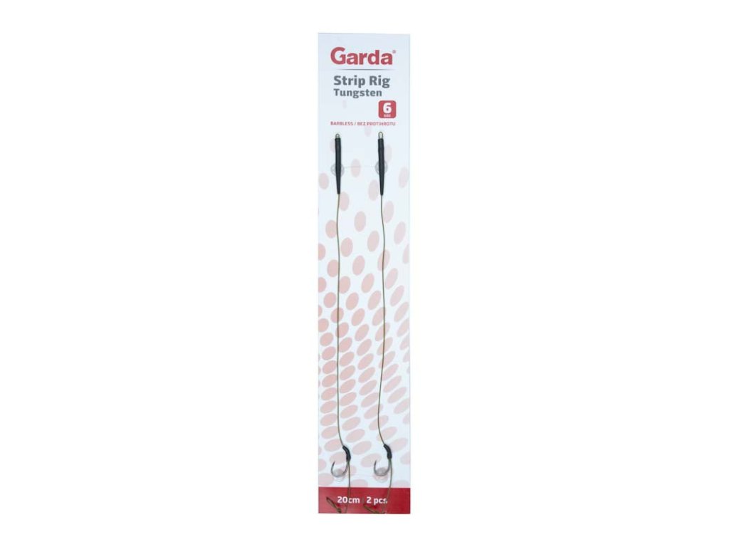 Garda Strip Tungsten rig je velmi účinný a univerzální návazec na montáž s plovoucím boilie, vyváženým boilie i boilie na dno. Při použití plovoucího boilie je nutné přidat na návazec Garda Carp Shot 0,9g nebo jiné protizávaží. Vyrábí se ve variantě s protihrotem i bez protihrotu.