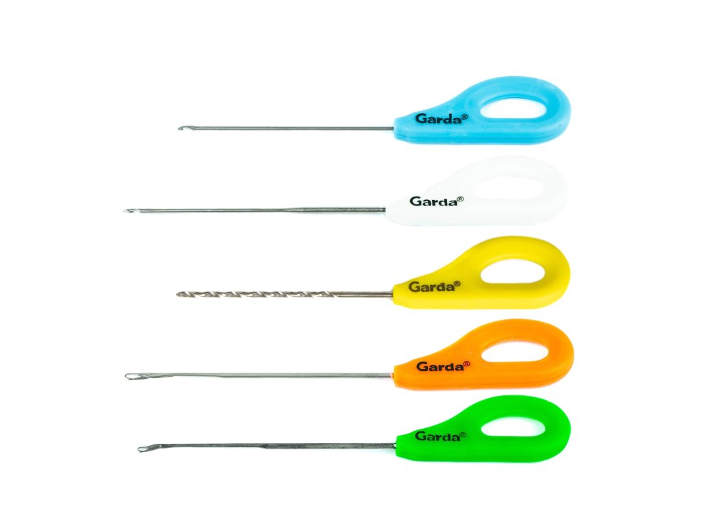 Set boilie jehel a vrtáčku Garda zahrnuje kompletní sadu, kterou rybář potřebuje k rybolovu. Bílá jehla je určená pro tvrdé nástrahy, oranžová je univerzální pro veškeré typy nástrah, modrá je na tvrdší nástrahy, když potřebujete co nejtenčí otvor. Zelená jehla se používá především na tvorbu smyček na šňůrkách s olověným jádrem, vrtáček je určený na předvrtání velmi tvrdých nástrah.