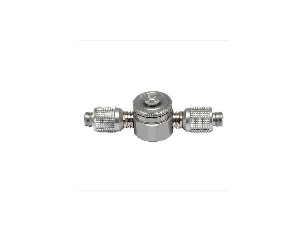 Je vyroben pomocí technologie CNC obrábění z vysoce odolného, spolehlivého a lehkého materiálu jakým je duralumin, tedy směs hliníku a mědi.K dispozici tři 7/16 závitové ventilové výstupy, které lze použít jak jednotlivé, tak v páru či všechny dohromady. Dva boční lze použít právě třeba na vařiče pro komfortnější vaření a vrchní pak třeba na upevnění lampy apod.