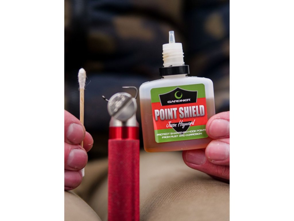 Jednoduše naneste malé množství „Point Shield“ na konec tamponu a na naostřenou část suchého háčku aplikujte pohybem nahoru a dolů. „Point Shield“ okamžitě ochrání hroty háčků, avšak pro maximální ochranu jej naneste na háček před použitím. Po aplikaci nekontrolujte ostrost hrotu háčku, mohlo by dojít k odstranění produktu. Podle potřeby znovu aplikujte. „Point Shield“ byl speciálně navržen pro použití pouze k ochraně naostřených rybářských háčků. Specifikace: - snadná aplikaci díky přiloženému tamponu - pro ochranu nanášejte jen potřebné množství - aplikovat na suchý hrot háčku - testováno _ plně biologicky odbouratelný roztok - objem: 25 ml - lahvičku a tampon uchovejte v originálním balení Odkaz na video: http://www.youtube.com/watch?v=wEBbrtUY3UEDoplňkové parametry