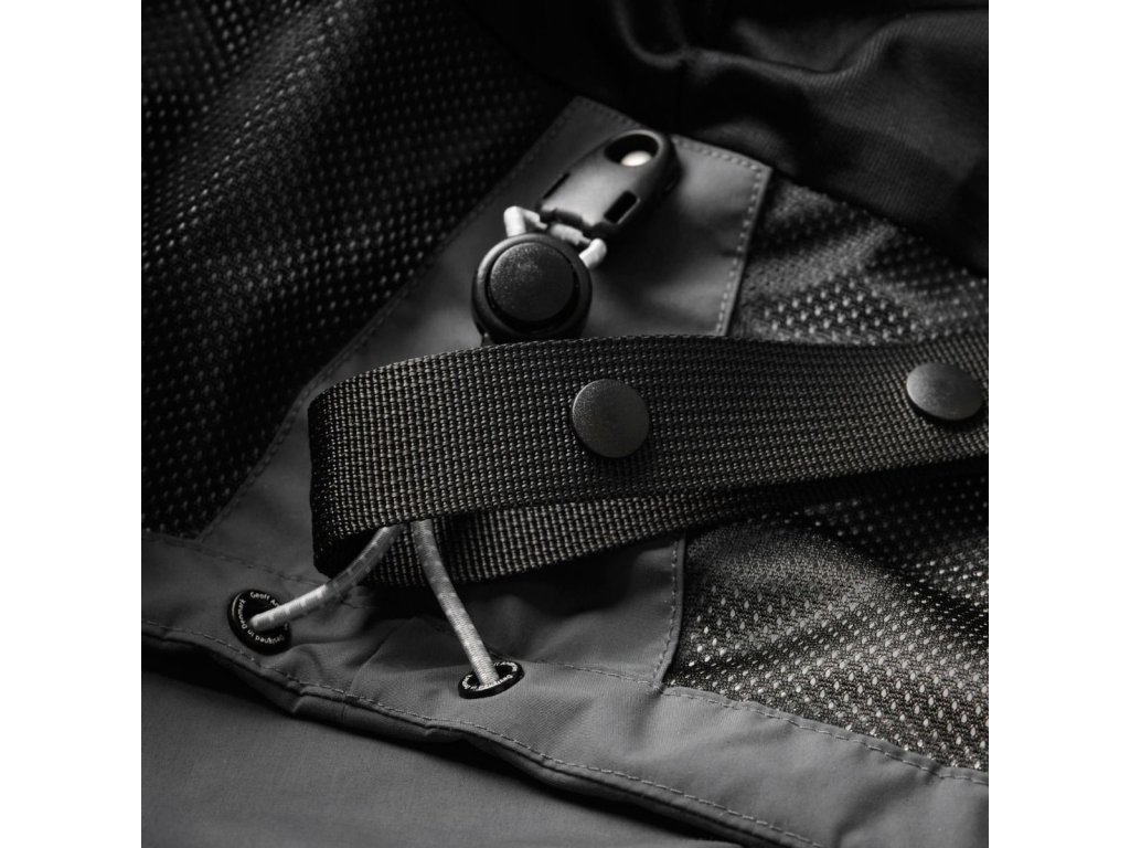 Kapuce se stínidlem odděleným od límce Kapuce je nastavitelná po obvodu/viditelnosti a hloubce Kapuci lze srolovat Límec s fleecovou podšívkou Rentex® D-kroužek Dvě náprsní kapsy se zipy YKK® AquaGuard® Hypalonové kování uvnitř kapsy pro uchycení nářadí Hypalonové kování pro nářadí vně kapsy Vnitřní kapsa se zipem YKK® Elastická síťovaná vnitřní kapsa Větrací/podpažní zipy YKK® AquaGuard® Integrovaný systém popruhů pro nošení Lehká síťovaná podšívka, hladká podšívka rukávů Zapínání na rukávy z hypalonu se suchým zipem Velcro® Nastavitelný pas s cvaknutím Pevný hlavní zip YKK® AquaGuard®