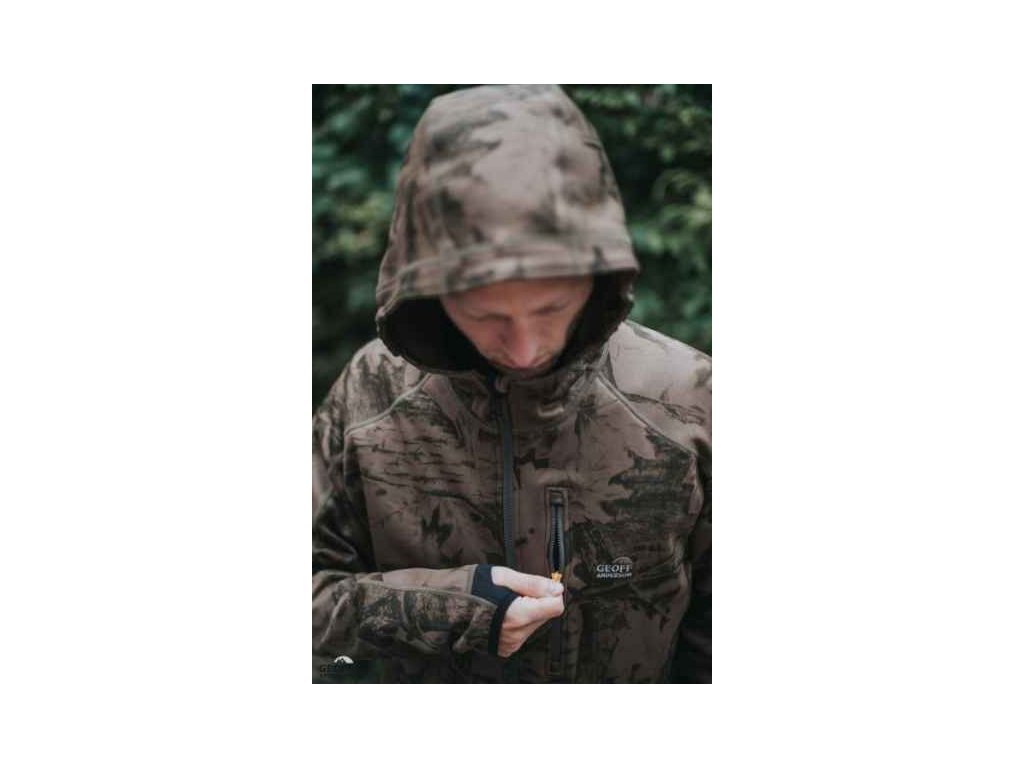 Hoody3 ™ je unikátní celoročně nositelná flísová bunda vyrobená z 4cestného materiálu, který vám poskytne dokonalou ochranu před poškozením, roztažením nebo jiného nepříjemného tlačení. Materiál se přesně přizpůsobuje aktivitám které právě provádíte a vždy se vrátí do původního stavu, takže nehrozí roztažení, zmenšení nebo vytahání. Materiál pohlcuje přebytečnou vlhkost a odvádí ji rychle pryč, což zaručí že zůstanete v suchu a teple i při namáhavých aktivitách. Celý povrch bundy HOODY3 je dokonale prodyšný a na hrudi je speciální neprofukující vrstva. Na rukávech se nacházejí otvory pro palce, které dokonale fixují rukáv a zabraňují vyhrnování při nahazování nebo jiných aktivitách. Bunda HOODY3 může být použita i jako střední vrstva pro všechny membránové bundy GEOFF ANDERSON. Na bundě jsou umístěny tři kapsy z toho jedna přímo na hrudníku, což ocení rybáři při odkládání svých nástrah v krabičkách. Všechny kapsy jsou osazeny nejkvalitnějšími zipy YKK® zipper s dlouhou životností a odolností vůči písku, blátu a krystalem slané vody. Maskáč je rozmísťování náhodně, takže se nikdy nestane, že by byly vyrobeny dva identické kusy. Toto oblečení je ideální řešení pro všechny milovníky přírody a kvality protože je vyrobeno až z 90% recyklovatelných materiálů.