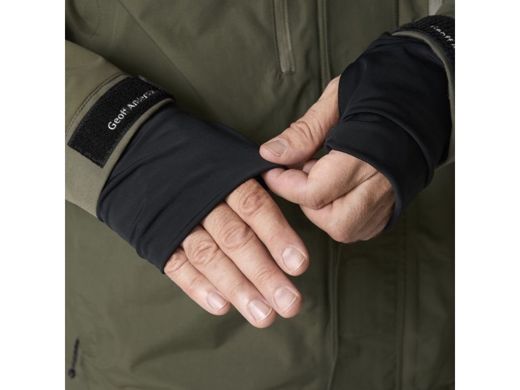 Integrovaná půl rukavice z lycry – lze použít 3 způsoby: jako rukavice, jako ohřívač zápěstí, nebo ji úplně schovat.