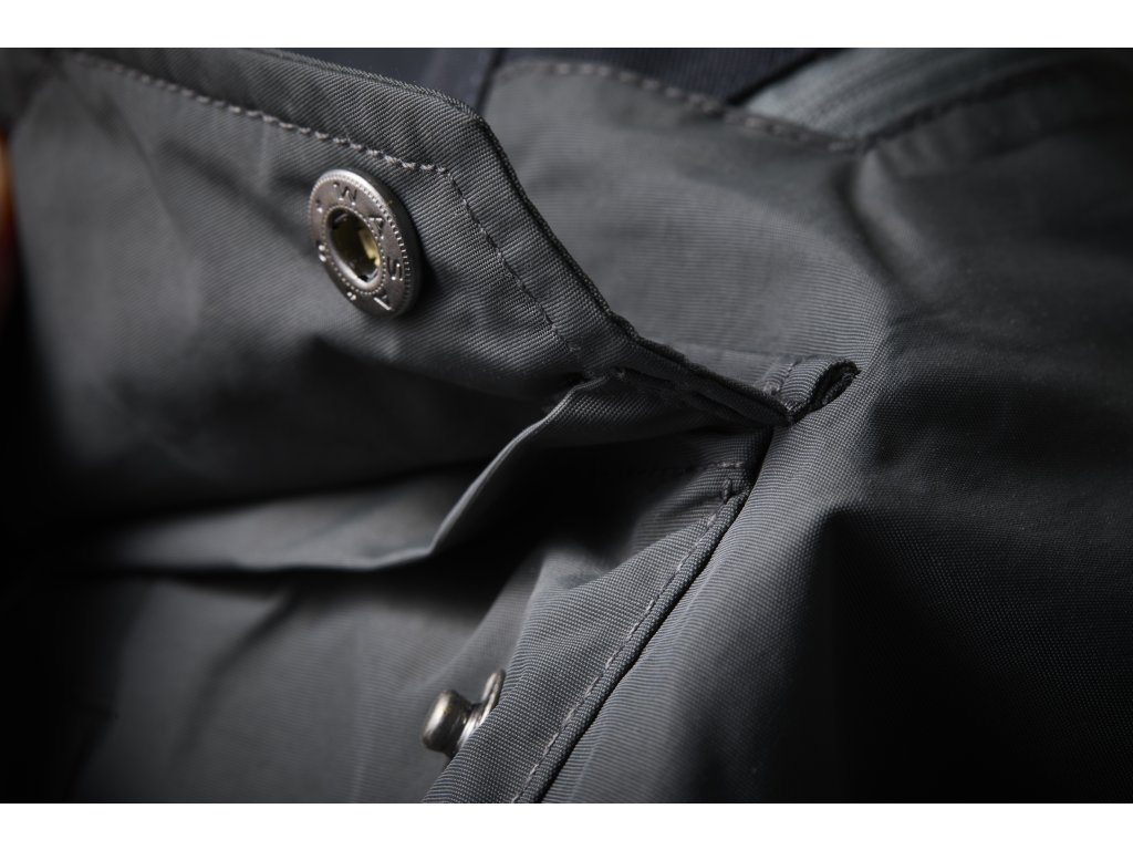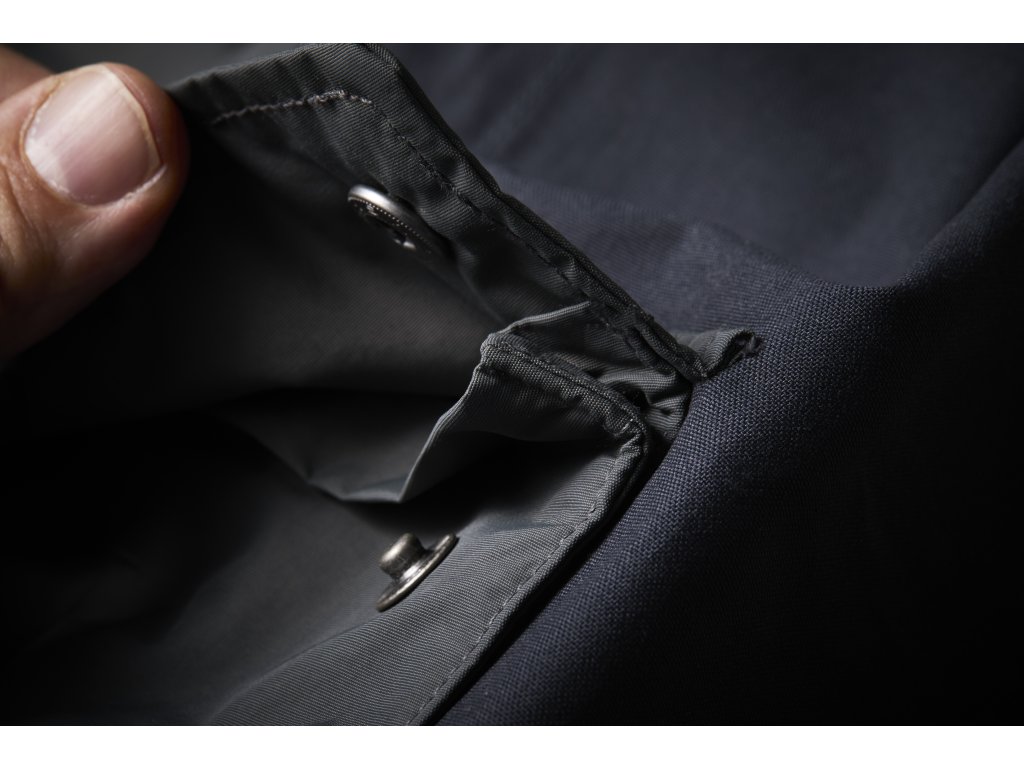 Zadní kapsu lze zapnout do svrchní látky, čímž získá uhlazenější vzhled, když se nepoužívá.