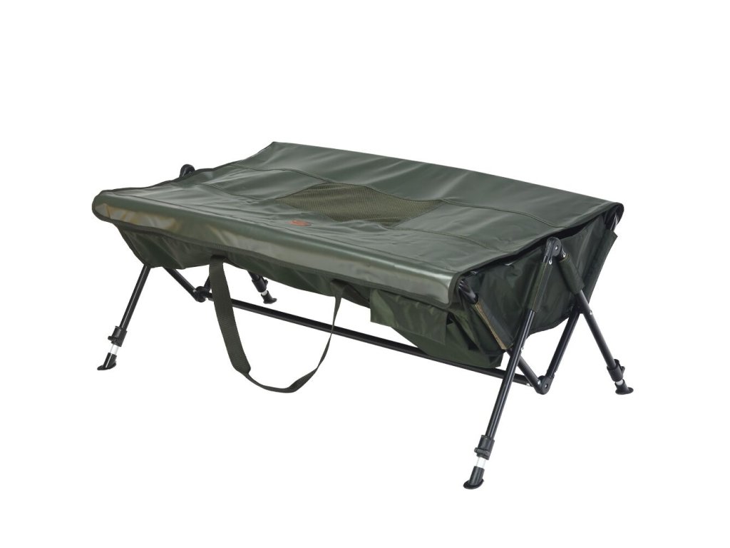 Konstrukce je vyrobena z hliníkové slitiny s velkou nosností a osazena nastavitelnými nožkami.Polstrovaná část je vyrobena z měkkého PVC, které je voděodolné a je dobře omyvatelné.Ve spodní části podložky je jemná a silná pogumovaná síťovina, která rychle odvádí vodu.Pro snadný transport a manipulaci je osazena dvojitým popruhem. Další výhodou této podložky je blesku rychlé rozložení a vrchní přehoz, který zabrání nežádoucímu vypadnutí úlovku.V boční kapse naleznete menší podložku pod nohy, která se skvěle hodí při klečení a pózování s úlovkem při focení. Rozměry: 104x64x40 cmHmotnost: 3,6 kgOdkaz na video: http://www.youtube.com/watch?v=L4tnn5R_34UDoplňkové parametry