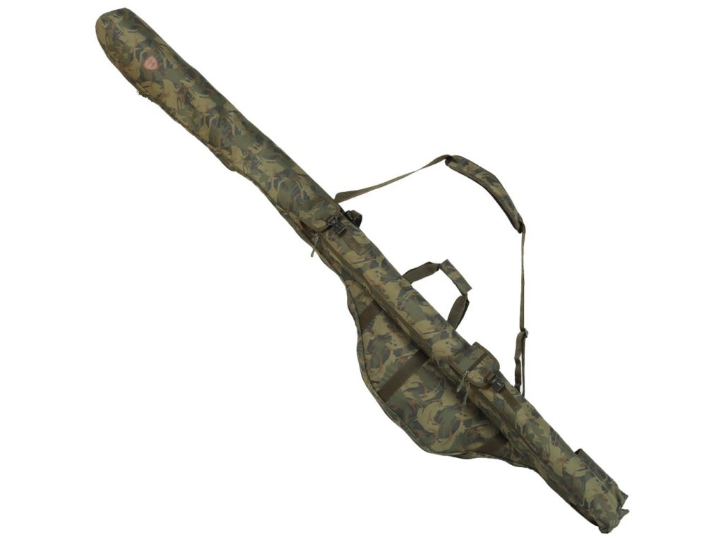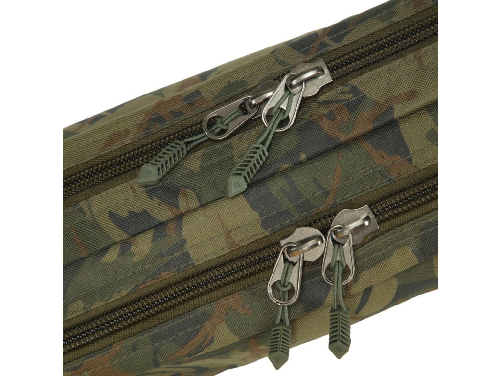Maximální ochrana pro dva dvoudílné pruty včetně navijáků (bez problému se vejdou i velkokapacitní navijáky). Kvalitní a široké zipy po celé délce, které zajistí dlouhou životnost tohoto pouzdra. Provedení v atraktivním kamuflážovém vzoru a použitý materiál nylon 210D s vodě odolným provedením. Samozřejmostí je polstrované provedení, které zajistí maximální ochranu Vašich prutů s navijáky. Hlavní popruh přes rameno je délkově nastavitelný a částečně polstrovaný. Z jedné strany jsou dvě kapsy, ta delší je určená na podběrák a ta kratší na vidličky. Z druhé strany naleznete částečnou kapsu se stahovacím popruhem pro uchycení deštníku. Tento obal je určen pro dva dvoudílné kaprové pruty v délce 2,7m (9ft). Délka: 150cm Odkaz na video: http://www.youtube.com/watch?v=1QojUJ0Dr5UDoplňkové parametry