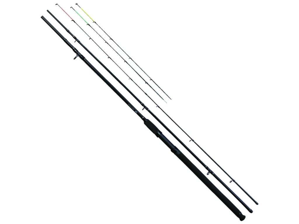 Tyto feederové pruty jsou vyrobeny z kvalitního grafitu IM6 a mají středně rychlou akci. Jsou velmi univerzální, výkonné díky své parabolické akci. Díky rozsahu nabízených špiček, jste připraveni na jakou situaci a druh lovené ryby. Souhrn špiček dodávaných k prutu: červená – tužší (grafitová), žlutá - střední tuhost (grafitová) a zelená – jemná (sklolaminátová). Prut je osazen kvalitními dvojitě vázanými SIC očky a má ergonomické DPS grafitové sedlo černé barvy. Rukojeť je vyrobena z EVA pěny. Specifikace: Délka: 11 ft (3,3 m) Zátěž: 40-90 g Transportní délka: 115 cm Hmotnost: 202 g Počet dílů: 3+3Doplňkové parametry