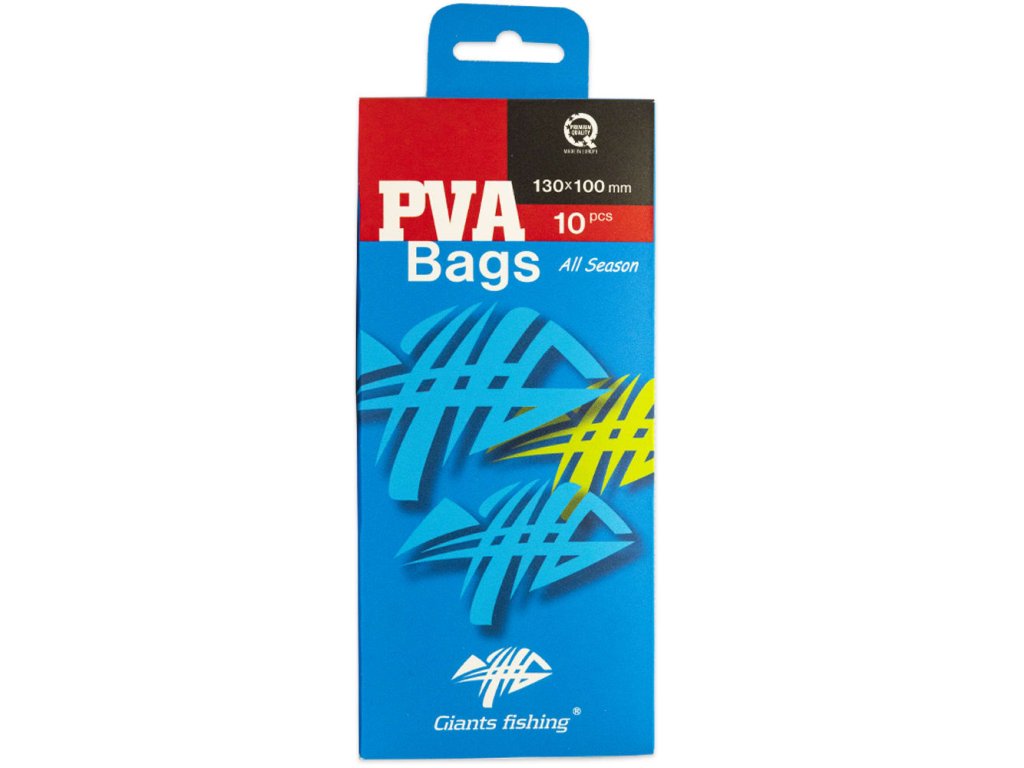 Jsou vhodné pro celoroční použití a dobře se rozpouští, také v chladné vodě. Použití pro vnadění boilies, pelet, method mixů apod. Součástí balení je praktická kartonová kartička, která vám usnadní plnění PVA sáčku. Vyrobeno v EU. Balení: 10 ks Rozměr: 130 x 100 mm Odkaz na video: http://www.youtube.com/watch?v=Gg3Fuxqt4yUDoplňkové parametry