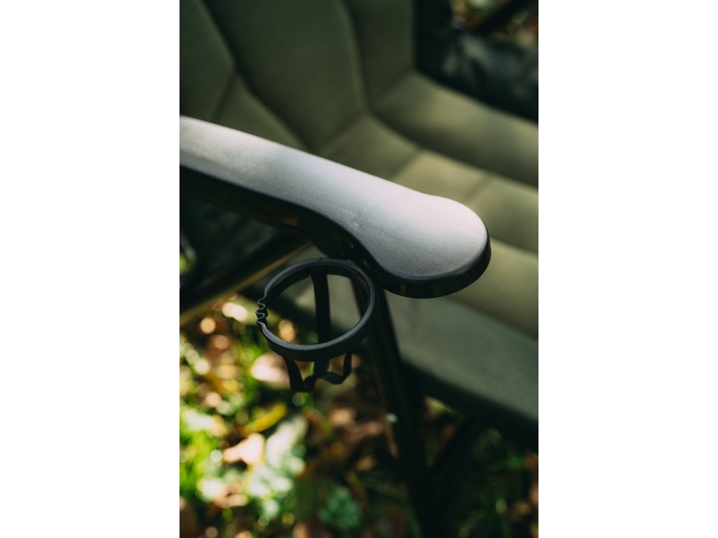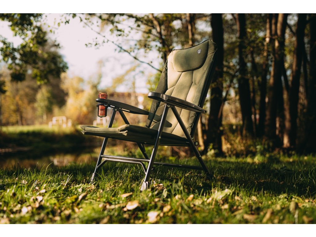 Rychlé sestavení a snadné polohování opěradla, pomocí područek, tak dělá křesílko ideálního parťáka na rybářské výpravy. Specifikace: - Jedinečný design matrace s polar fleecem - Použitá tkanina tmavě zelený polyester 500D/ polar fleece - Loketní podpěry s polohovatelným nastavením opěradla - Držák na nápoj v rukojeti - Ocelová konstrukce o průměru 25 a 12 mm - Čtyři výškově nastavitelné nohy - Velké pacičky proti zaboření do bláta - Rozměry: 43 x 55 x 42/103 cm - Váha: 6,4 kg