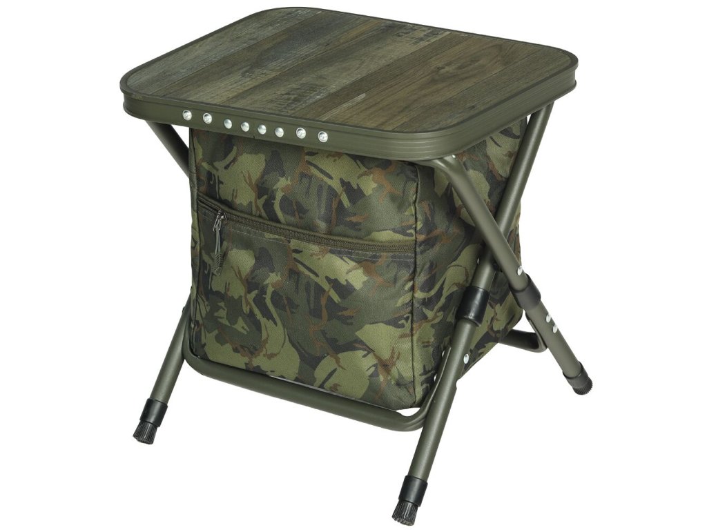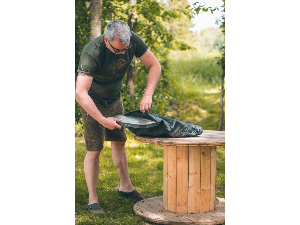 Vylepšená konstrukce, která zaručí snadnější sestavení a malé přepravní rozměry. Čtyři výškově nastavitelné nohy, které mají na svých koncích protiskluzové packy. Transportní obal je všit ve spodní části tašky a díky tomu ho máte vždy připravený k zabalení. Konstrukce je vyrobena z hliníkových trubek o průměru 19 a 20mm. Textilní část je vyrobená z nepromokavé polyesterové tkaniny, která je v decentním kamuflážovém vzoru. Rozměry: 40x33,5x41cm Hmotnost: 1,96 kg Odkaz na video: http://www.youtube.com/watch?v=c22ZTY3qtP8Doplňkové parametry