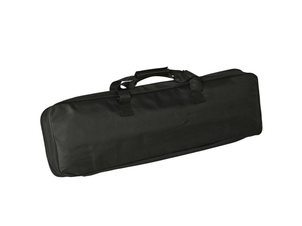Stojan je hliníkové konstrukce a jeho čtyři nohy jsou výškově stavitelné. Povrchová úprava v černé barvě a je dodáván včetně polstrovaného obalu. Délka stojanu: 73 až 125 cm Výška: 26 až 33 cm Šířka hrazd: 22 cm Délka tyče od hrazdy: 30 cm Transportní rozměry: 75 x 23 x 7 cm Hmotnost včetně obalu: 1,9 kgDoplňkové parametry