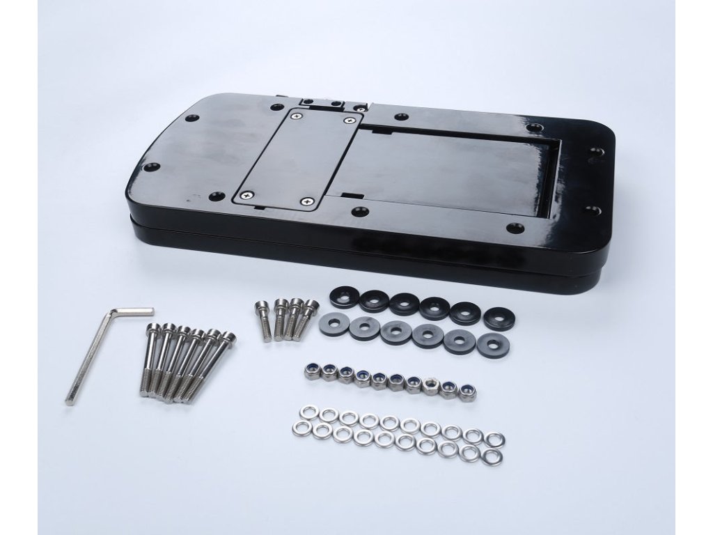 Rychloupínací montážní deska pro příďové motory. Snadná instalace, skvělá funkčnost a nerušivý černý design. Deska je zhotovena ze dvou hliníkových plátů, které se k sobě sešroubují pomocí 6ti šroubů a matek. K palubě pak přidělejte pomocí 4 dalších šroubů. Velikost_ 35 x 17,2 cm