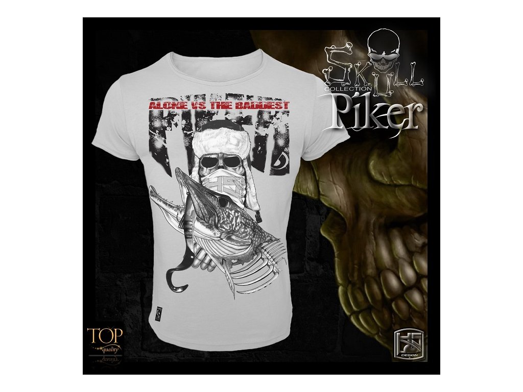 Skull kolekce je vytvořena z nejvíce exkluzivních materiálů, velmi měkké, a s tím nejlepším možným příjemným pocitem na dotek, s nejmodernějšími tiskařskými technikami a s maximální péčí v každém detailu. Čtyři jedinečné designy vytvořené ručním kreslením. Čtyři nová trička s odlišným designem a čtyřmi novými barvami, výsledkem je mladší a moderní sbírka v dokonalé kombinaci elegance a inovace. Tato kolekce triček nesmí chybět žádnému rybáři. Tričko PIKER je vyrobeno ve světle šedé barvě velmi jemným vodotiskem a nese znaky našeho speciálního designu, lebka má na sobě naši beranici a nákrčník s logem HS. Tričko je určeno pro lovce štik, pro ty, kdo milují lov dravých ryb „Alone vs the baddest“ (sám proti nejzlejším). Kvalita a tisk jsou daleko nad vaše nejlepší očekávání. Charakteristika výrobku: Tričko špičkové kvality je vyrobeno ze 100% spřádané bavlny a poskytuje tak maximální komfort, odolnější, měkčí a příjemnější na kůži. Návod na praní trička: Pro dlouhodobou životnost výrobku a zachování tkaniny doporučujeme žehlit a prát trička na rubové straně a nepoužívat vodu s teplotou vyšší než 40 stupňů.Doplňkové parametry