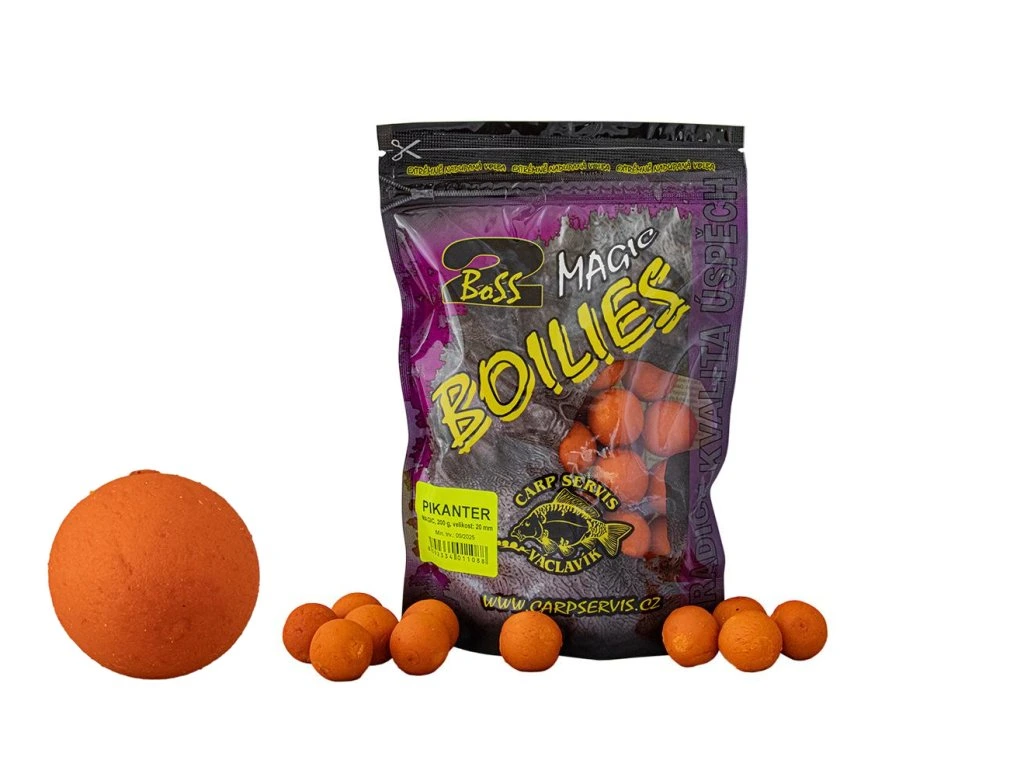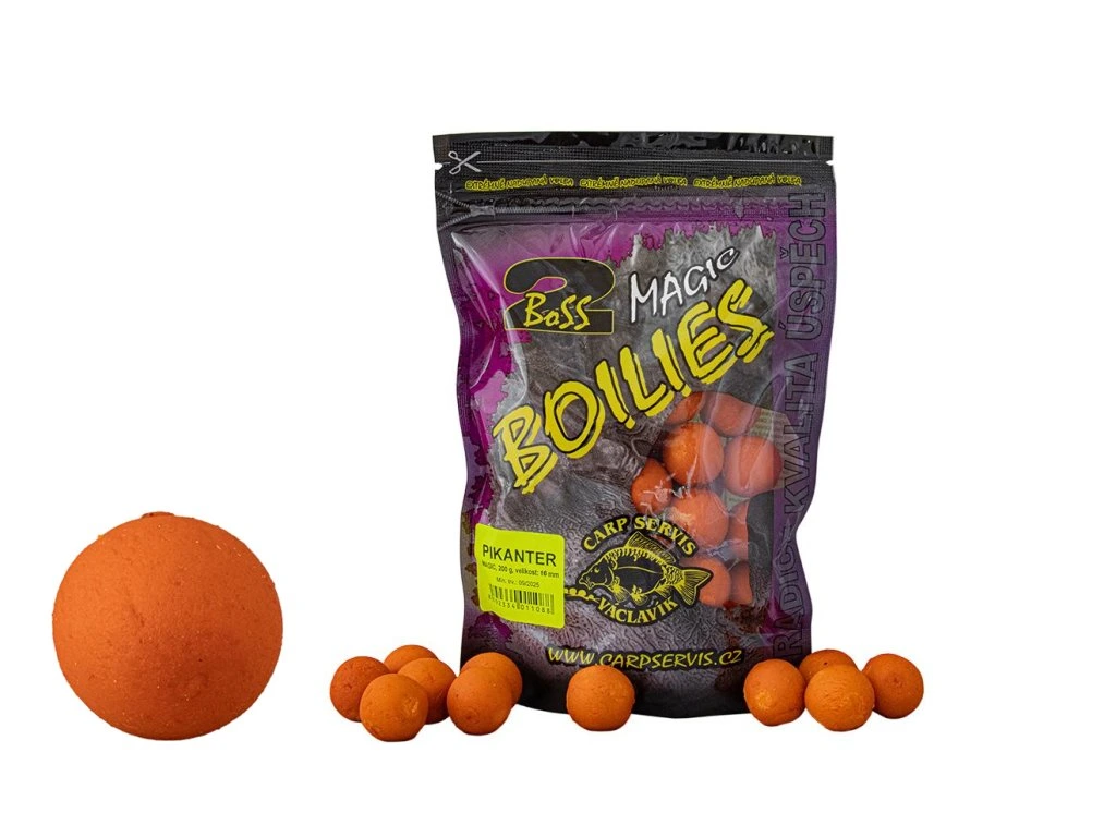 Boilies Boss2 Magic je řada odlišná od klasiky. Přestože tento typ boilies na první pohled budí dojem jednoduchého složení, opak je pravdou. Hlavním cílem u této nástrahy bylo vyrobit boilies výrazné barvy a pronikavého aroma se zachováním maximální atraktivity. Těmto atributům se však složitě dostává, pokud většina všech důležitých složek kvalitního boilies je tmavé barvy. Použili jsme zde naši novou složku na bázi enzymaticky upravených živočišných bílkovin, která barevně nedegraduje nástrahu, a přitom kaprům báječně chutná. V řadě Boss2 Magic máme příchuť Slunečnice, Pikanter a Mořská panna. Slunečnice je žluté barvy a velmi pronikavé sladké příchuti. Pikanter je oranžový s kořeněnou masovou vůní, což zaujme každého staršího kapra a Mořská panna je růžová - kuličky jsou sladké příchuti. Výrobce: CSVDoplňkové parametry