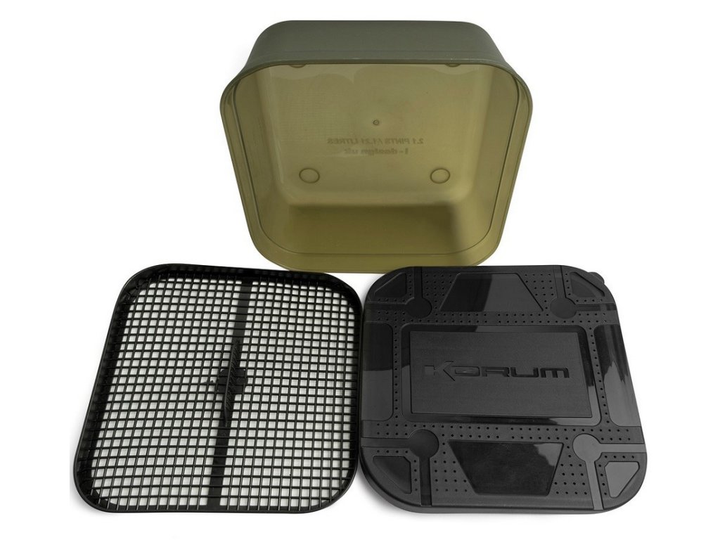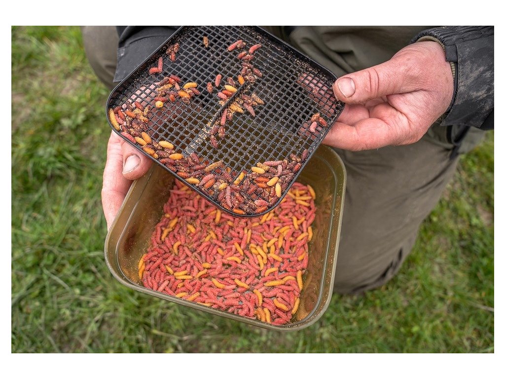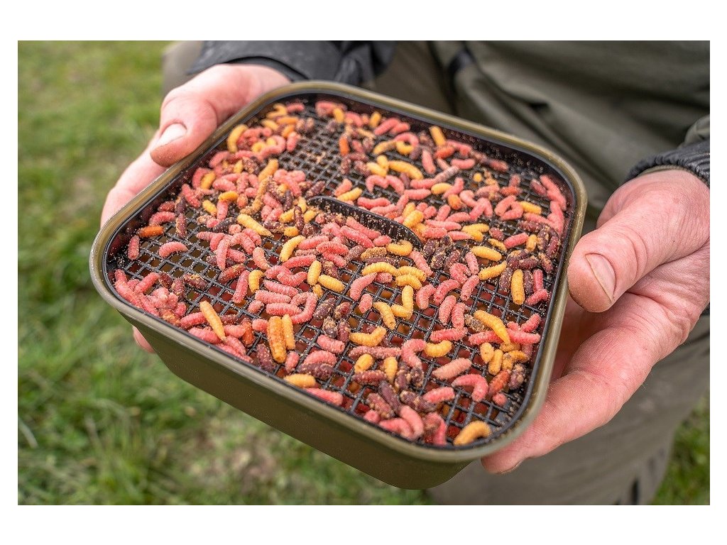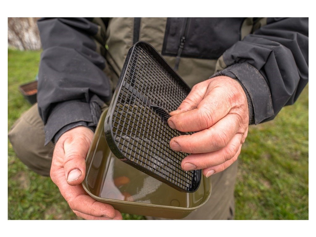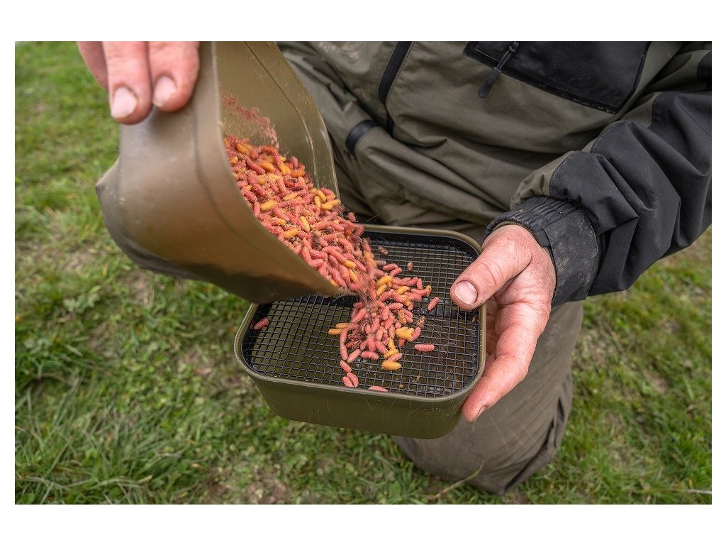 Dodává se s vlastním sítkem a prodyšným víkem pro delší udržení čerstvých nástrah.