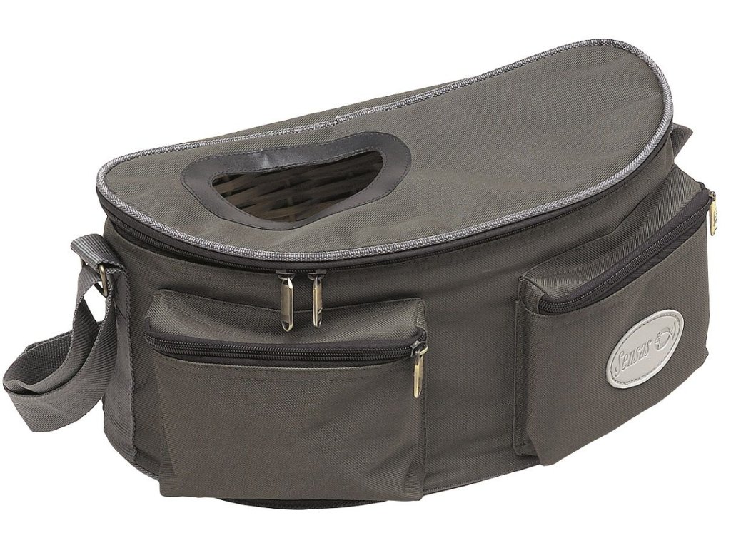 Pstruhový pletený košík z kvalitního proutěného materiálu. Jeho součástí je obal z nepromokavého materiálu vybavený 2 kapsami na zip a popruhem na rameno.
