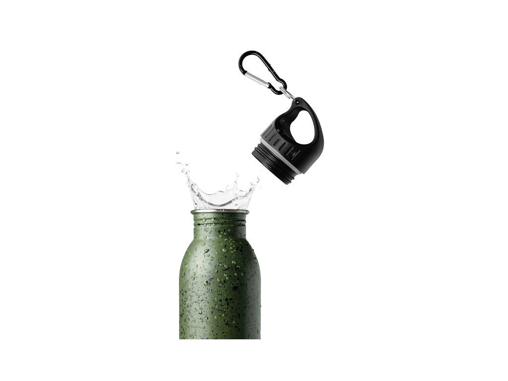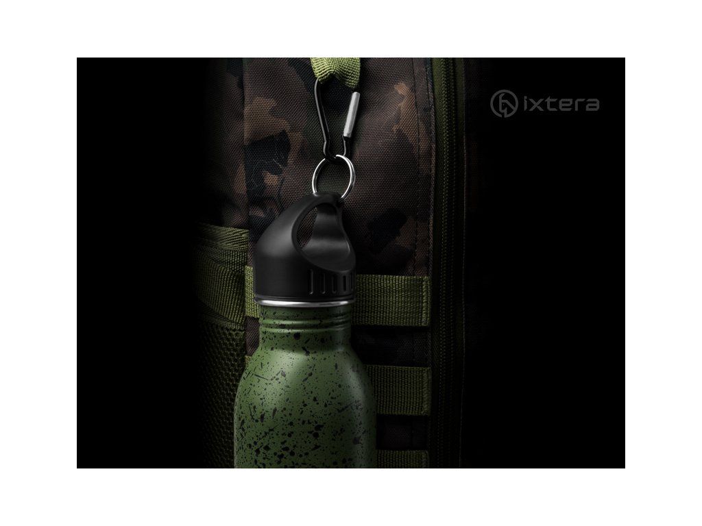 O stoprocentní uzavření obsahu se stará masivní víčko z tvrzeného plastu. Ten je osazen spolehlivým těsněním, které eliminuje riziko přetečení tekutiny v batohu či tašce. Praktickým detailem je integrované oko na víku, doplněné o pevnou karabinu. Díky ní můžete láhev Ixtera WaTANK lehce připnout na vnější část batohu a ušetřit tak místo v hlavním úložném prostoru.