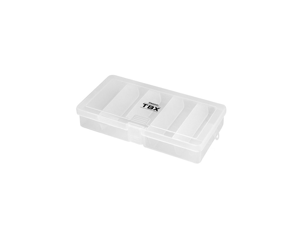 TBX ONE je řada multifunkčních krabiček určených pro uložení rybářského příslušenství. Vyrobené jsou z transparentního plastu, takže máte vždy dokonalý přehled o uložených věcech uvnitř krabičky. Řada TXB ONE je vybavena praktickými klipy z transparentního plastu. Technické parametre: Model: Delphin TBX One 132-5P Rozměr: 132x65x25mm Počet pevných přihrádek: 5 Rozměr přihrádky: 2,5x5,7x2,1cm Počet vkladatelných příčníků: 0 Model: Delphin TBX One 186-5P Rozměr: 186x98x35mm Počet pevných přihrádek: 5 Rozměr přihrádky: 3,5x9,3x3,5cm Počet vkladatelných příčníků: 0 Model: Delphin TBX One 214-5P Rozměr: 214x113x41mm Počet pevných přihrádek: 5 Rozměr přihrádky: 4x10,9x3,5cm Počet vkladatelných příčníků: 0Doplňkové parametry