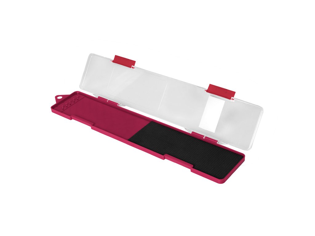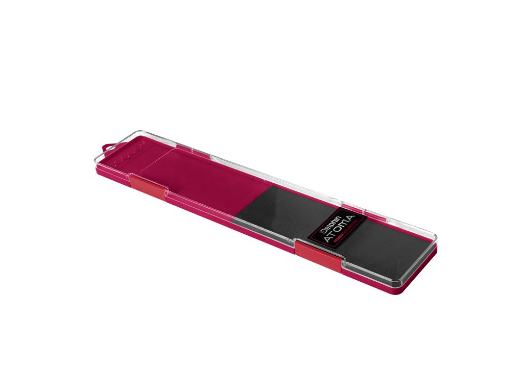 Box na feederové návazce Delphin ATOMA je praktická pomůcka na odkládání hotových návazců, která by neměla chybět ve výbavě žádného rybáře. Tento plochý box je vyroben z plastu. Jeho spodní část je vínové barvy, doplněná o plastové výběžky, na které upevníte návazce a o EVA pěnu, kde můžete zapíchnout háčky. Vrchní část je z průhledného plastu, abyste měli dokonalý přehled o umístění návazců. Uzavírá se dvěma klipy.Doplňkové parametry