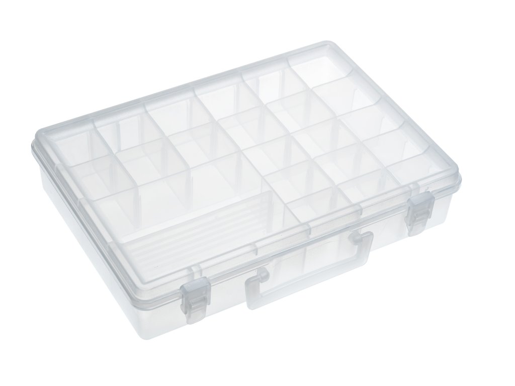 Nabídka plastových krabiček a kufříků představuje ucelený sortiment osvědčených a stále žádaných modelů. Zajímavé jsou dvou a třípatrové kufříky, vyrobené z vysoce odolného plastu. V zavřeném stavu udrží stojícího dospělého člověka. Za vynikající ceny vám nabízíme i krabičky na drobné příslušenství, háčky, umělé mušky atd. Řada modelů z naší nabídky krabiček přináší drobné inovace oproti běžně nabízeným typům na trhu. Tyto drobné úpravy jsou vedeny snahou maximálně přizpůsobit i toto základní příslušenství praktickým požadavkům rybářů. Všechny krabičky jsou vyrobeny z plastové hmoty s příměsí silikonu. Umožňují proto bezproblémové přechovávání agresivních gumových twisterů a podobných nástrah.Doplňkové parametry
