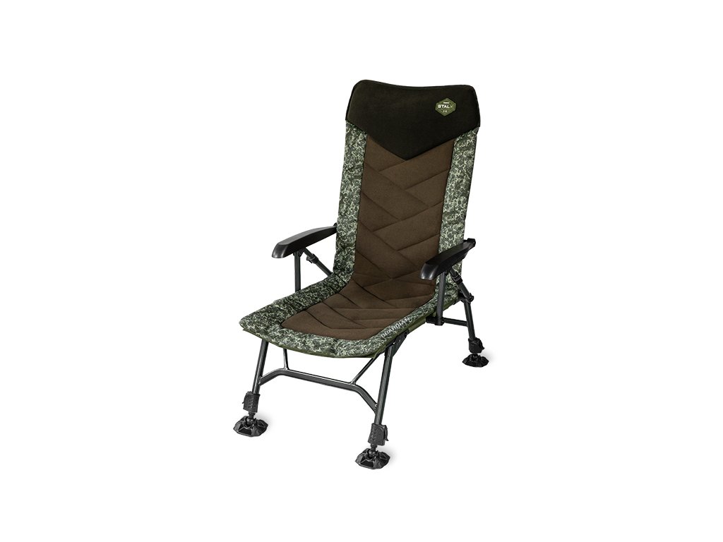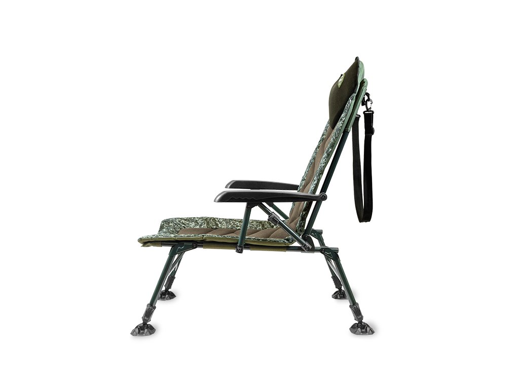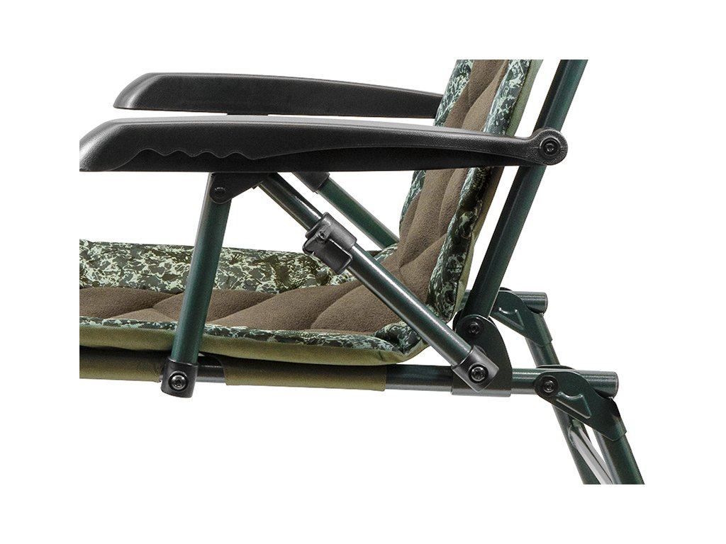 Exkluzivní křeslo s vyšším opěradlem zaručující ten nejvyšší komfort během pobytu u vody. Jeho základem je mimořádně pevná, odolná, ale zároveň velmi lehká konstrukce zelené barvy. Dokonalý estetický dojem tohoto křesla však vytváří matraci, která svým designovým provedením upoutá na první pohled. Je tvořena kombinací látek, přičemž uprostřed se nachází polstrovaný fleecový panel s jedinečným šikmým prošíváním. Po okrajích je umístěna 600D látka s patentovanou C2G kamufláží. Pro maximální pohodlí je ve vrchní, hlavové části extra polstrovaný fleecový panel tmavě zelené barvy. Ten se stará o zachování krčních a hlavových partií v teple a závětří.Výškově nastavitelné nohy s ověřeným zajišťovacím systémem jsou opatřeny robustními a flexibilními patkami, které se přizpůsobí každé nerovnosti terénu a zároveň zabraňují zaboření do měkké či bahnité země.