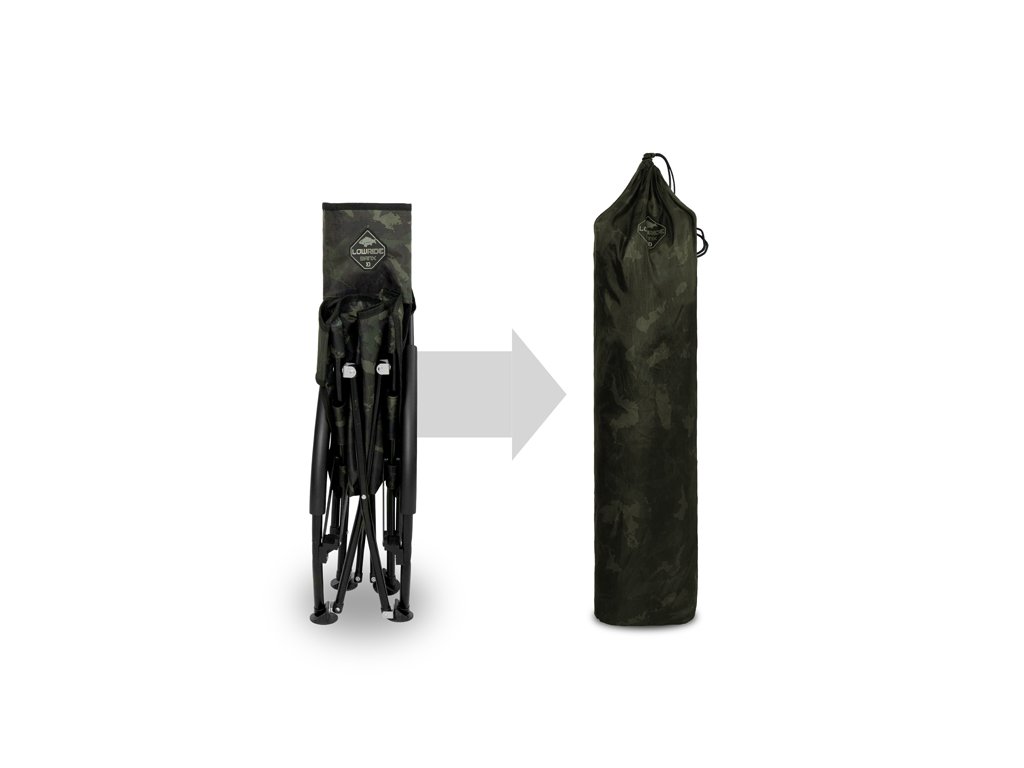 Na boku židle se nachází praktická kapsa na odložení oblíbeného nápoje, telefonu nebo drobného příslušenství. Nechybí ani úchyt pro pohodlný transport. LOWRIDE je navíc vybaveno suchými zipy, které slouží k fixaci během přenášení.