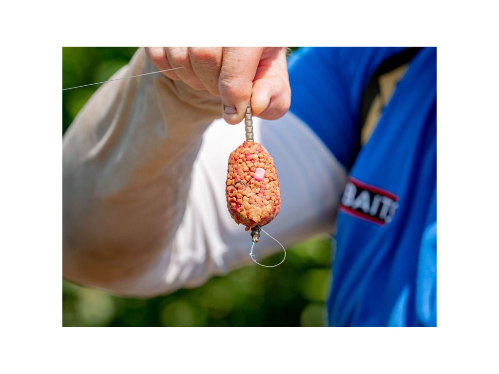Unikátní navržení šikmé základny přispívá k vytváření menšího výtlaku vody při dopadu na vodní hladinu. Díky ni nedochází k uvolnění návnady na krmítku a jejímu vypadnutí při dopadu při nahazování. Vyznačuje se i menším hlukem při kontaktu s vodní hladinou. Každé krmítko je vybaveno měkkou gumovou sponou, která zachovává délku háčku a zajišťuje, že háček zůstane po celou dobu na svém místě. Ta také umožňuje nastavit délku pro háček a směr hrotu háčku, kdy při zaseknutí se snadno uvolní ze sevření pro bezpečnost zaseknutí.Specifikace: