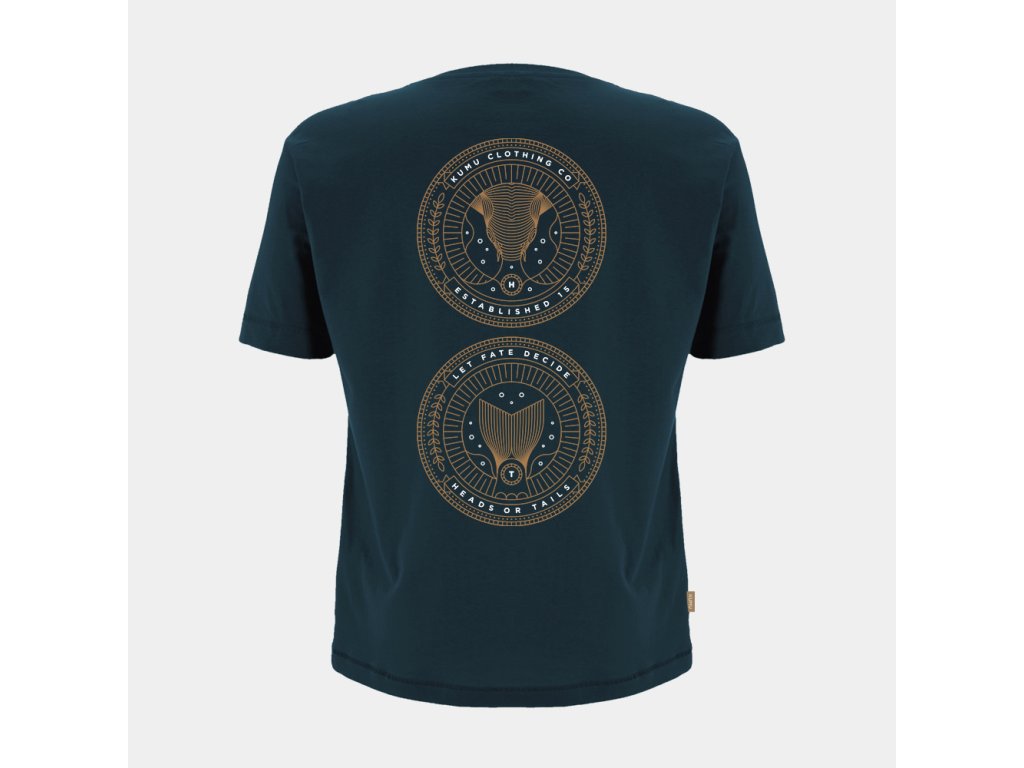Naše grafika Heads or Tails vzdává hold těm, kteří jsou schopní nechat o svém osudu rozhodnout minci. Každé tričko je vybavené visačkou, která obsahuje ZDARMA překrásnou minci pro situace, kdy budete v životě potřebovat pomocnou ruku při nějaké další životní volbě. Další geniální a originální nápad od KUMU s dalším ikonickým artefaktem do vaší sbírky. Dvoubarevný sítotisk na naší super měkké 150g/2 modré látce s tkanými detaily na boční nášivce.Doplňkové parametry