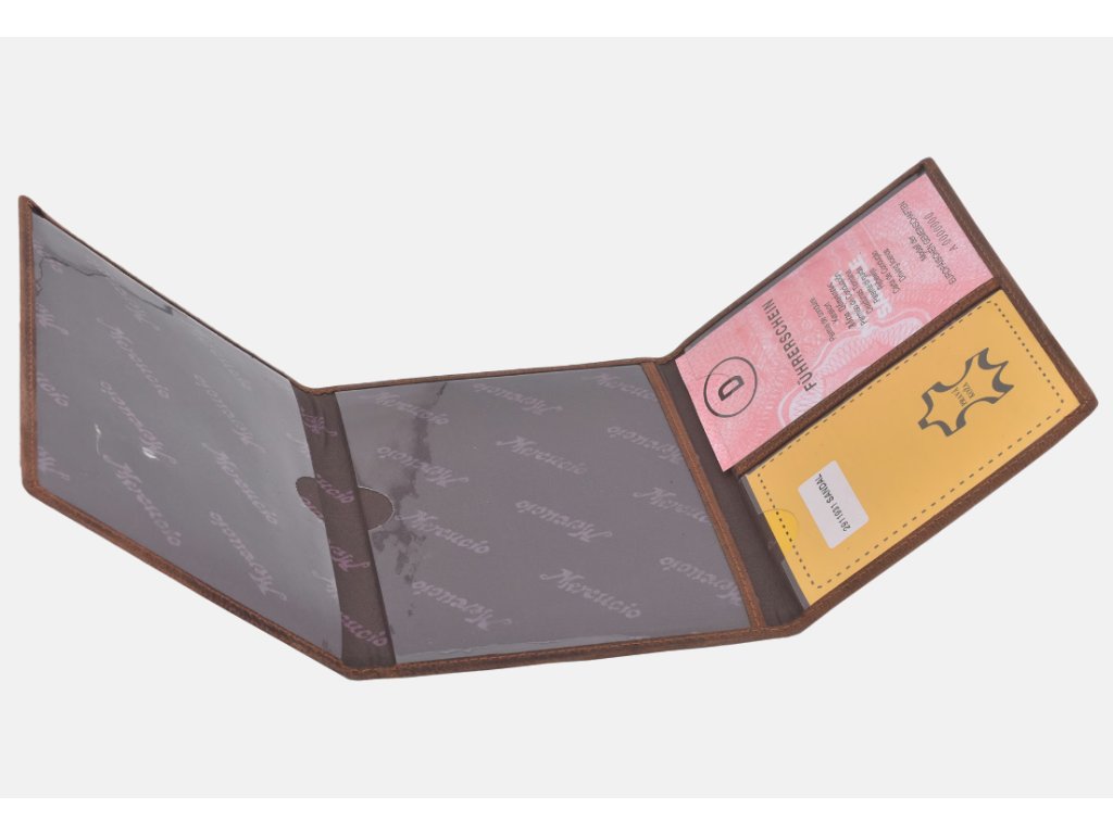 Kvalitní kožená dokladovka většího rozměru se dvěma malými a dvěma většími přihrádkami. Malé přihrádky můžete využít na běžné doklady, jako například občanský nebo řidičský průkaz a větší přihrádky jsou zase přizpůsobeny rybářským průkazům a povolením.