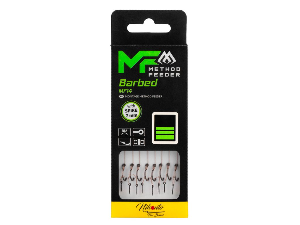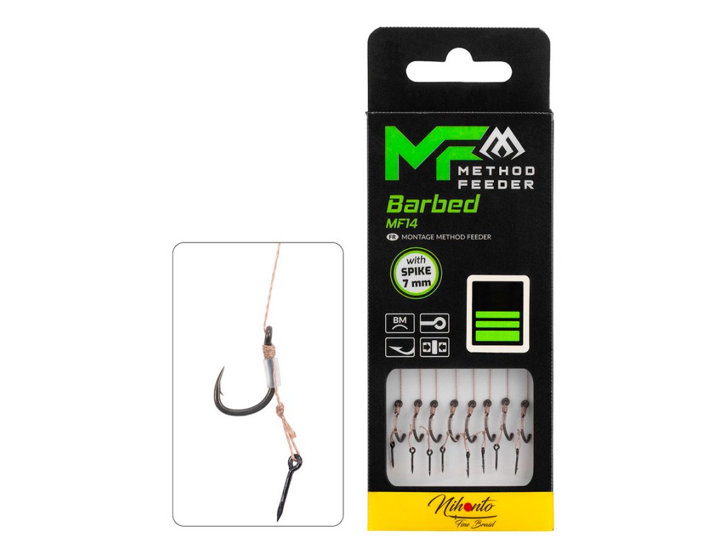Mikado Návazec - METHOD FEEDER s trnem 7mm – háček MF14 vel. 14 s protihrotem/ pletená šňůra: 0.12mm/10cm - 8 ks