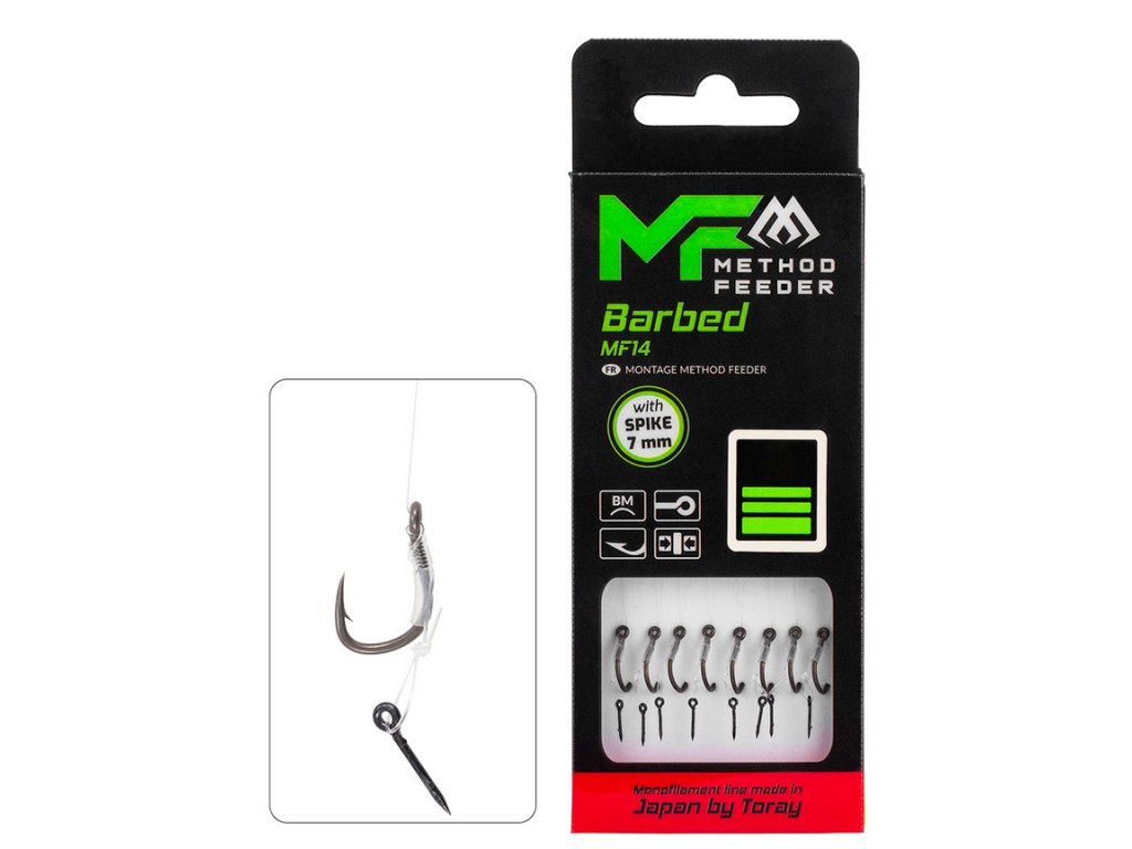 Mikado Návazec - METHOD FEEDER s trnem 7mm vel.4 – háček MF14 s protihrotem - 0.28mm/10cm monofilní vlasec