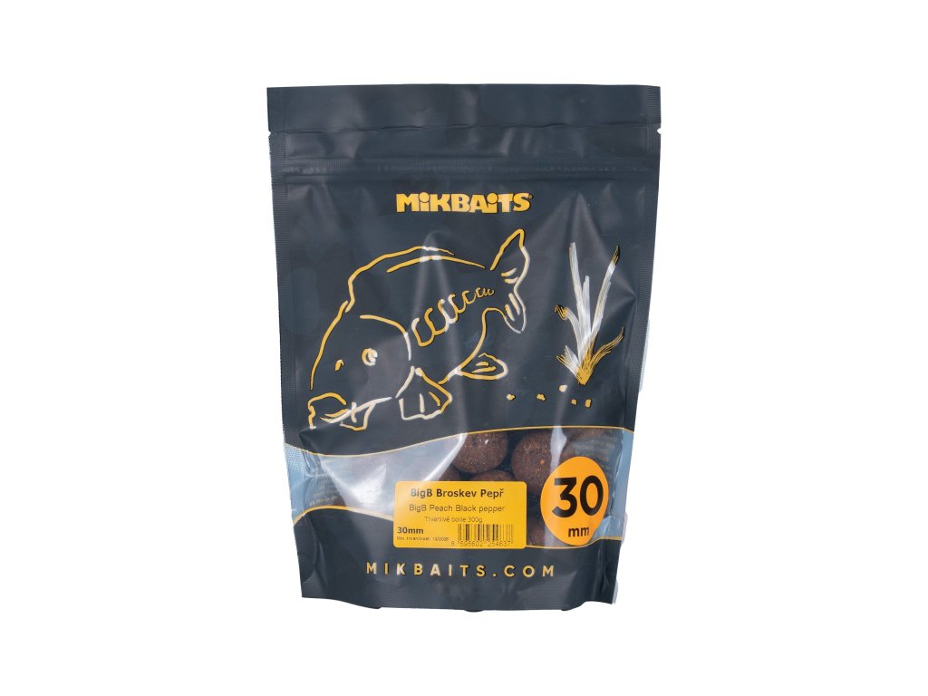 30 mm boilie jsou velkou selektivní nástrahou, která na jedné straně limituje záběry od nechtěných ryb, a naopak je lákavá pro velké trofejní kusy kaprů. BigB Broskev&Black pepper je kombinací velmi příjemné ovocné příchutě s řízem a ostrostí EO Black pepper. To vše ve vysoce atraktivní směsi plné Krillu, Robin Redu, mořských řas a prvotřídních rybích mouček. Výsledkem je zcela neotřelé boilie s okamžitou reakcí ryb i při minimálním vnadění. Dá se použít celoročně, vynikající v chladných obdobích i během letních parných dnů. Co víc, má v sobě jakýsi magnet na obří kapry. To se nedá popsat, to se musí zkusit!Doplňkové parametry