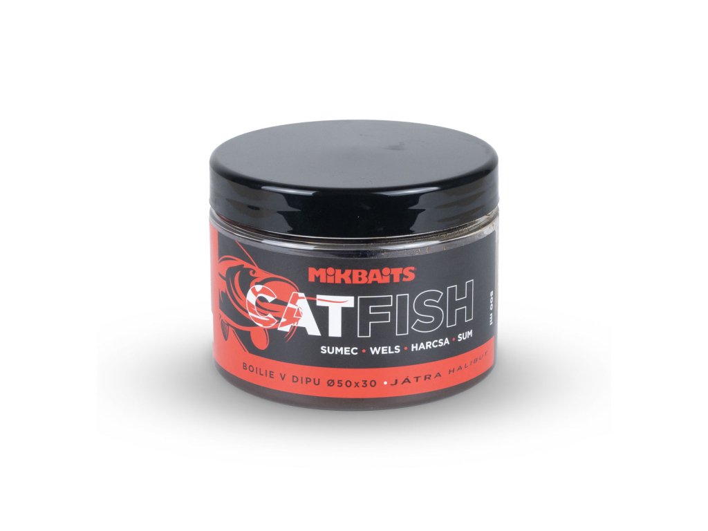 Mikbaits Catfish sumec řada Boilie v dipu Játra Halibut 500ml