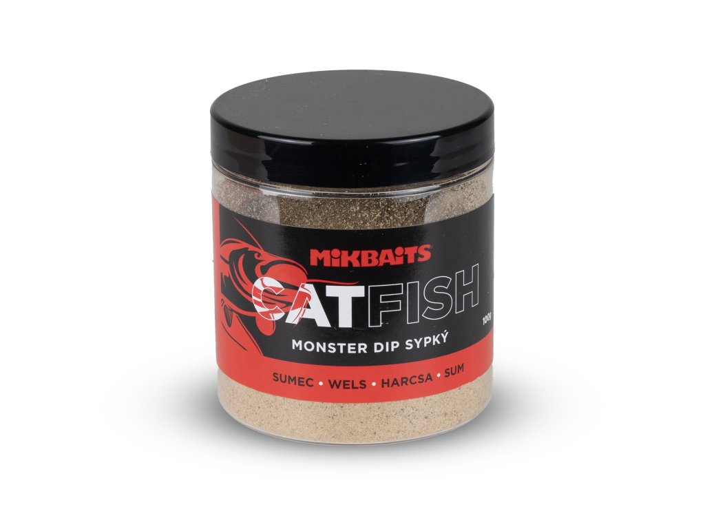 Catfish Monster sypký dip s příchutí ryb, jater a mořských živočichů zatraktivní nástrahu a může přesvědčit sumce k záběru. Je skvělý na veškeré typy nástrah, ať už boilie, pelety a dalších. Nástrahu nejprve namočte do vody, dipu nebo boosteru a obalte v sypkém dipu. Pokud chcete, aby dip zůstal na nástraze co nejdéle, postup opakujte a poté nechejte alespoň chvilku zaschnout.
