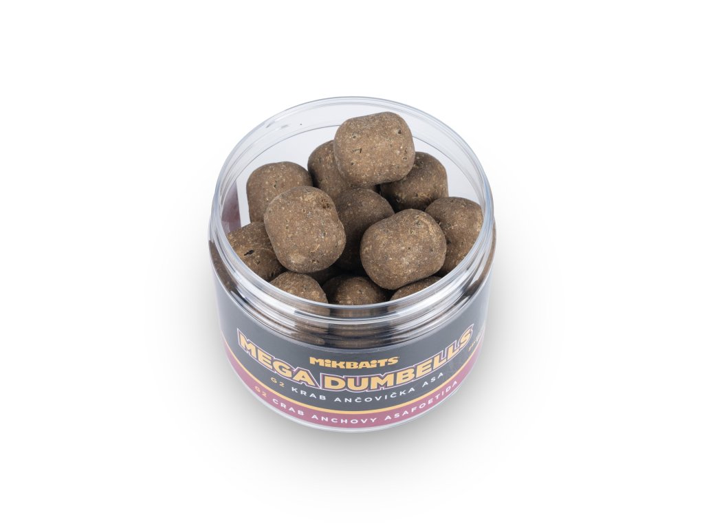 Mega Dumbells v neobvyklém rozměru 24x30mm jsou velkou selektivní nástrahou, která na jedné straně limituje záběry od nechtěných ryb, a naopak je lákavá pro velké trofejní kusy kaprů. Gangster G2 Krab&Ančovička&Asa je bezpochyby největší ikonou mezi boilie na velké kapry. Obrovskou popularitu si drží od uvedení na trh v roce 2010 a každým rokem ji ještě navyšuje. Pro mnoho zkušených kaprařů je to jednoznačná volba, pokud je čekají výpravy na velké ryby, prestižní závody nebo chtějí na neznámou či velmi obtížnou vodu něco, na co se můžou spolehnout. G2 má v sobě ale jakýsi zvláštní dar, a tak si ji oblíbili i rybáři, kteří jezdí na víkend či jen odpoledne na privátní vody. Úspěšně s ní chytají i rybáři na menších řekách či rybnících. Kouzlo G2 spočívá v neskutečně našlapané směsi bez jakýchkoli objemových přísad, prvotřídních esencích, esenciálních olejích a v neposlední řadě Ančovičkovému extraktu, který používáme právě a jen do tohoto boilie. I díky tomu má Gangster silnou slanou chuť a vůni mořské potravy. Je velmi pevný, na háčku vydrží nastražený až dva dny, samozřejmě, při vysoké aktivitě sumečků nebo bílé ryby se může rozpadnout výrazně dřív. Funguje i s minimem návnady, ryby na něj reagují okamžitě, ale čím déle a více s ním vnadíte, tím je lepší.