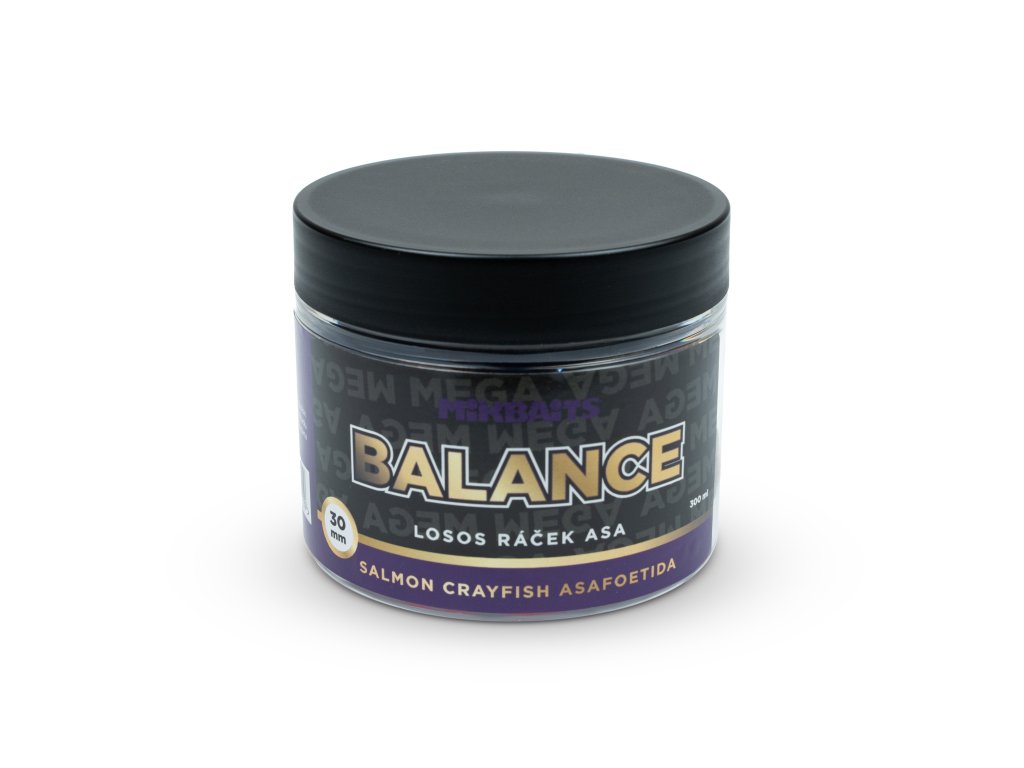 Mega Balance 30 mm jsou skvělé nástrahy k cílenému lovu velkých kaprů a všude tam kde potřebujete omezit záběry nechtěných ryb. Vyrábějí se ze stejných směsí a AK jako boilie též příchutě, navíc jsou ale do nich přidány extra lehké složky. Výsledná nástraha má stejnou barvu a vůni jako návnady, je však neutrálně vyvážená nebo může lehce plavat. Můžete jí nastražit tak jak je a ona po chvíli až do sebe přijme vodu zlehka dosedne na dno, nebo ji předem „dovyvážit“ dipem stejné příchutě nebo tekutou potravou kterou jí necháte nasáknout alespoň několik hodin. Nedávejte však příliš tekutin, aby Balance zůstala lehčí než standardní boilie.