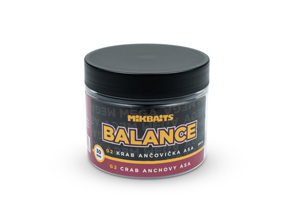 Mega Balance 30 mm jsou skvělé nástrahy k cílenému lovu velkých kaprů a všude tam kde potřebujete omezit záběry nechtěných ryb. Vyrábějí se ze stejných směsí a AK jako boilie též příchutě, navíc jsou ale do nich přidány extra lehké složky. Výsledná nástraha má stejnou barvu a vůni jako návnady, je však neutrálně vyvážená nebo může lehce plavat. Můžete jí nastražit tak jak je a ona po chvíli až do sebe přijme vodu zlehka dosedne na dno, nebo ji předem „dovyvážit“ dipem stejné příchutě nebo tekutou potravou kterou jí necháte nasáknout alespoň několik hodin. Nedávejte však příliš tekutin, aby Balance zůstala lehčí než standardní boilie.