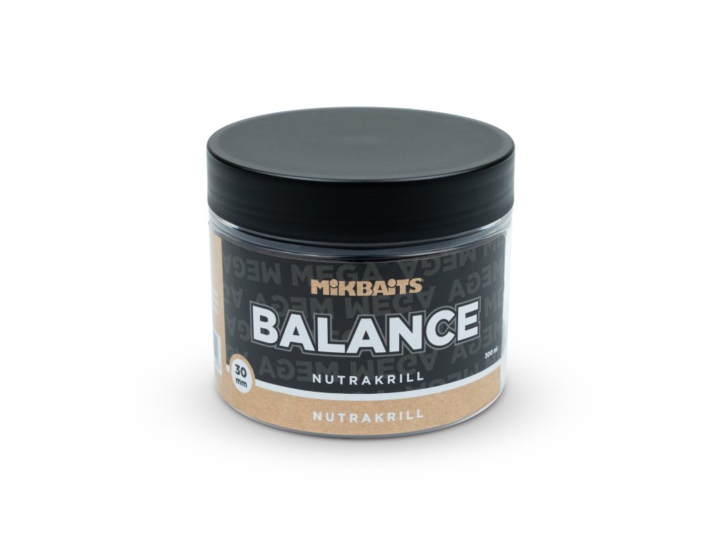 Mega Balance 30 mm jsou skvělé nástrahy k cílenému lovu velkých kaprů a všude tam kde potřebujete omezit záběry nechtěných ryb. Vyrábějí se ze stejných směsí a AK jako boilie též příchutě, navíc jsou ale do nich přidány extra lehké složky. Výsledná nástraha má stejnou barvu a vůni jako návnady, je však neutrálně vyvážená nebo může lehce plavat. Můžete jí nastražit tak jak je a ona po chvíli až do sebe přijme vodu zlehka dosedne na dno, nebo ji předem „dovyvážit“ dipem stejné příchutě nebo tekutou potravou kterou jí necháte nasáknout alespoň několik hodin. Nedávejte však příliš tekutin, aby Balance zůstala lehčí než standardní boilie.