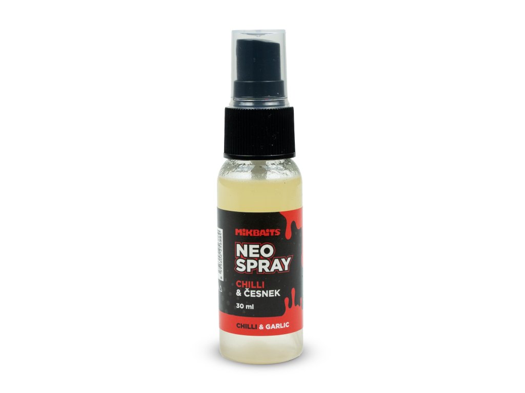 Neo spray je vysoce koncentrovaný tekutý postřik, kde jsou krom esence i koncentrovaná sladidla a chuťové stimulátory. Je určený zejména na zatraktivnění Fluo pop-up, Ronnie pop-up, pěnových Zig-up. Lze s ním i oživovat starší nástrahy. Neo spray je okamžitě nastartuje do původního stavu. Stačí zlehka postříkat a nechat v kelímku alespoň desítky minut absorbovat. Neo spray lze použít i na jiné nástrahy, jako je standardní boilie, pelety, partikl, rohlíkové boilie, extrudy a další. V těchto případech stačí nástrahu postříkat krátce před náhozem a nechat zlehka zaschnout.