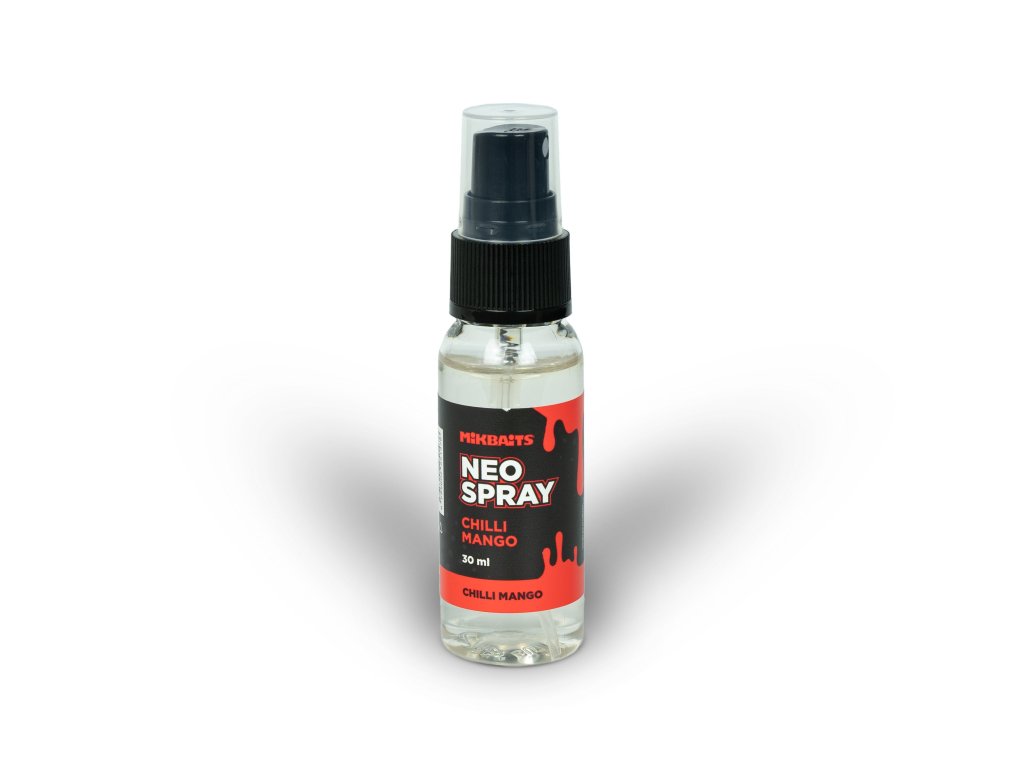 Neo spray je vysoce koncentrovaný tekutý postřik, kde jsou krom esence i koncentrovaná sladidla a chuťové stimulátory. Je určený zejména na zatraktivnění Fluo pop-up, Ronnie pop-up, pěnových Zig-up. Lze s ním i oživovat starší nástrahy. Neo spray je okamžitě nastartuje do původního stavu. Stačí zlehka postříkat a nechat v kelímku alespoň desítky minut absorbovat. Neo spray lze použít i na jiné nástrahy, jako je standardní boilie, pelety, partikl, rohlíkové boilie, extrudy a další. V těchto případech stačí nástrahu postříkat krátce před náhozem a nechat zlehka zaschnout.
