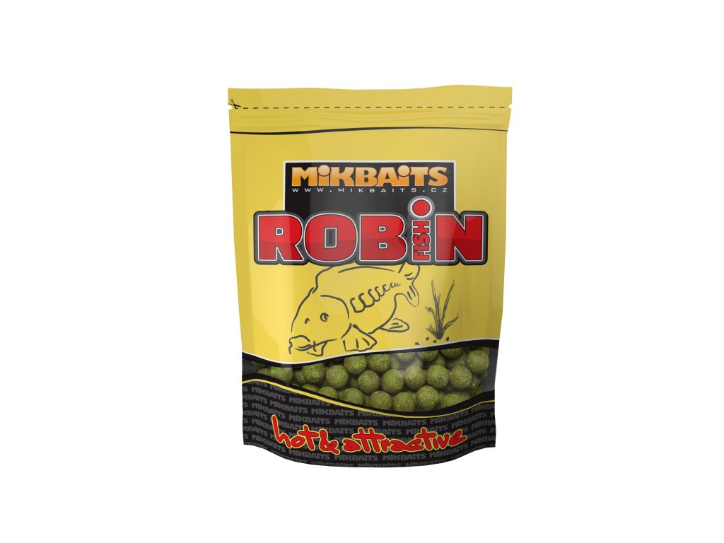 Robin Fish je velmi atraktivní boilie, které je svou charakteristikou něco mezi eXpressem a Spicemanem. S prvně jmenovaným má společné omílání a rychlost účinku, s druhým zase silnou kořeněnou chuť. Jeho specifikum je v tom, že jsme do něj krom léty osvědčeného Robin Redu použili nové druhy „Robinů“ od Haiths – Robin Gold, Robin Green a Robin Orange. V součtu to dává nesmírně atraktivní boilie, jako stvořené pro krátké vycházky nebo závody. Samozřejmě, není žádný problém s ním vyrazit na týden či déle, neboť má kvalitní základ v rybích moučkách, mléčných proteinech a ptačích zobech. Ovocné příchutě se dají použít celoročně včetně velmi chladných období, rybí a masové jsou výborné od jara do podzimu.Složení: Rybí a enzymatické rybí moučky 27%, ptačí zoby 15%, mléčné proteiny 12%, objemové přísady 30%, atraktory 13%, extrakty 3%, Ultra esence, tekuté potravy, esenciální oleje, chuťové stimulátory, tekutý prezervativ, čerstvá vejce.