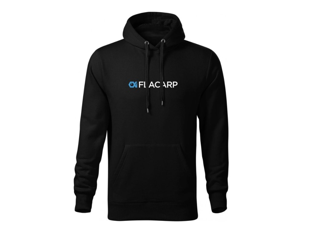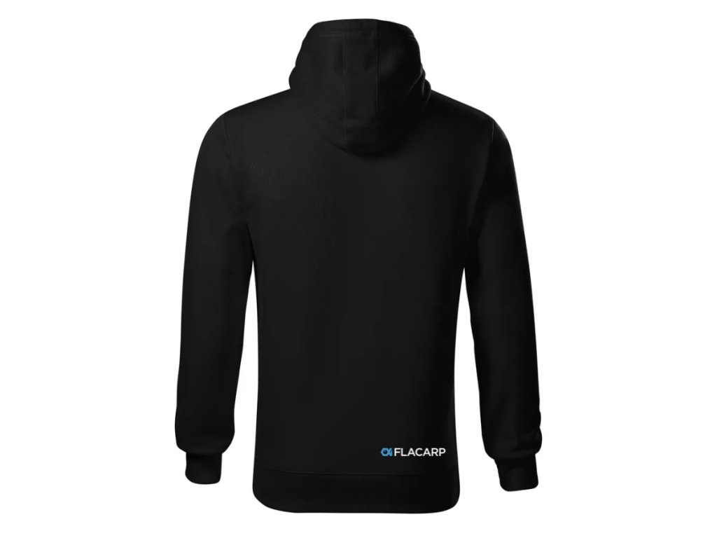 Kvalitní černá mikina s kapuví a logem FLACARP přední a zadní strana.